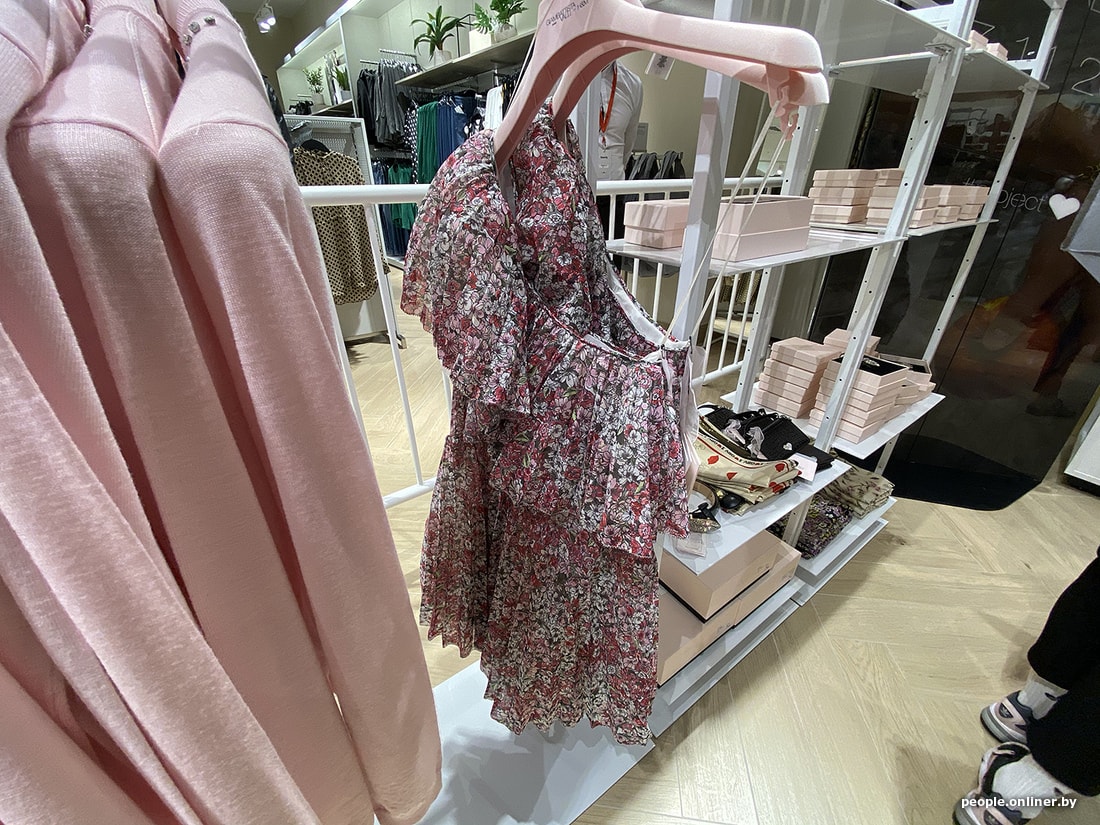 Собственно, сама капсула занимает совсем небольшую часть помещения. Все яркое, розовенькое. В Минск привезли около 500 единиц одежды. Самое популярное красное платье из фатина представлено в количестве всего 5 штук.