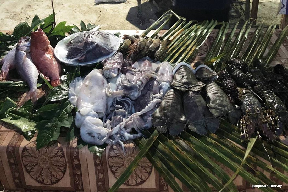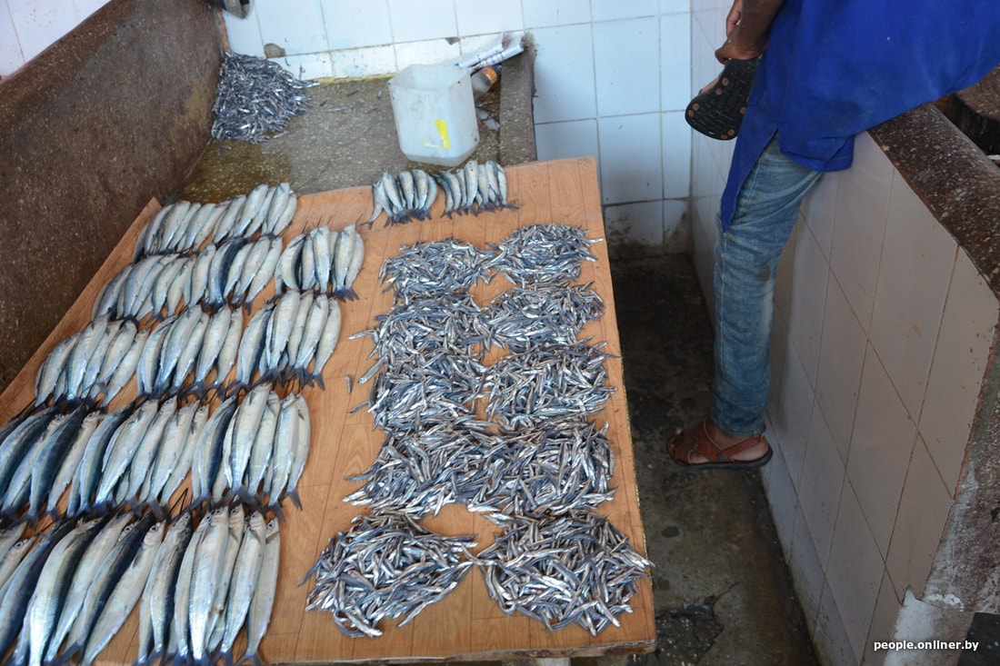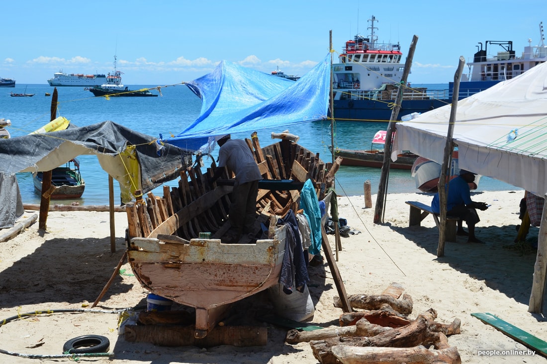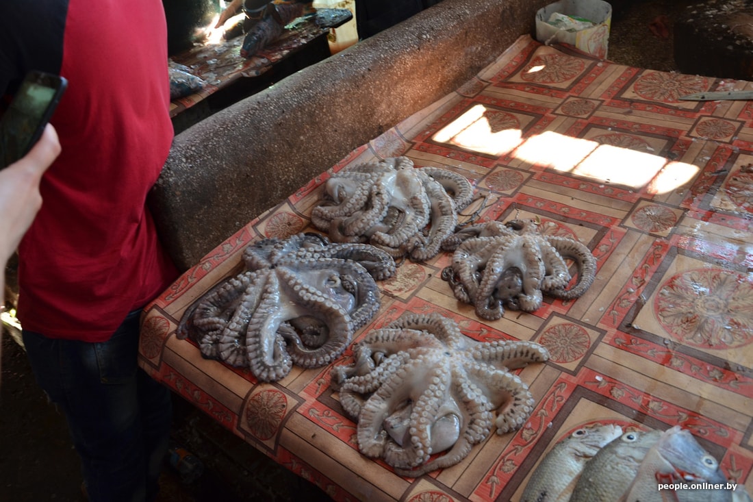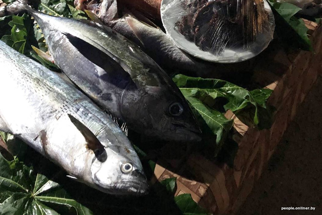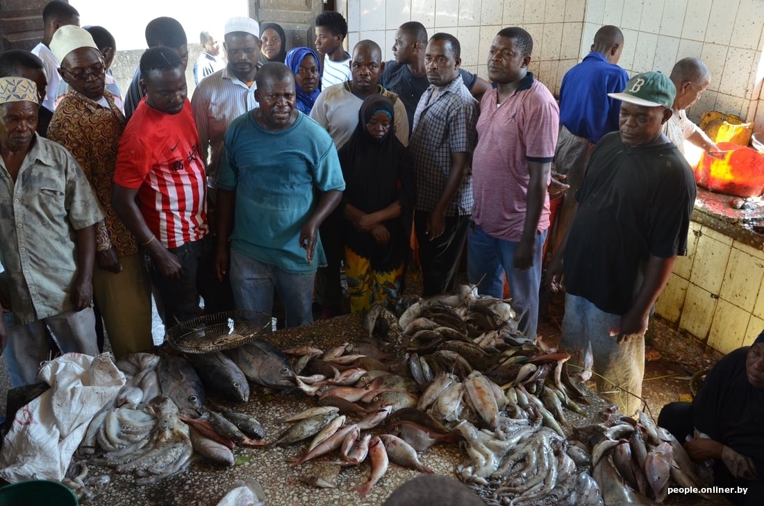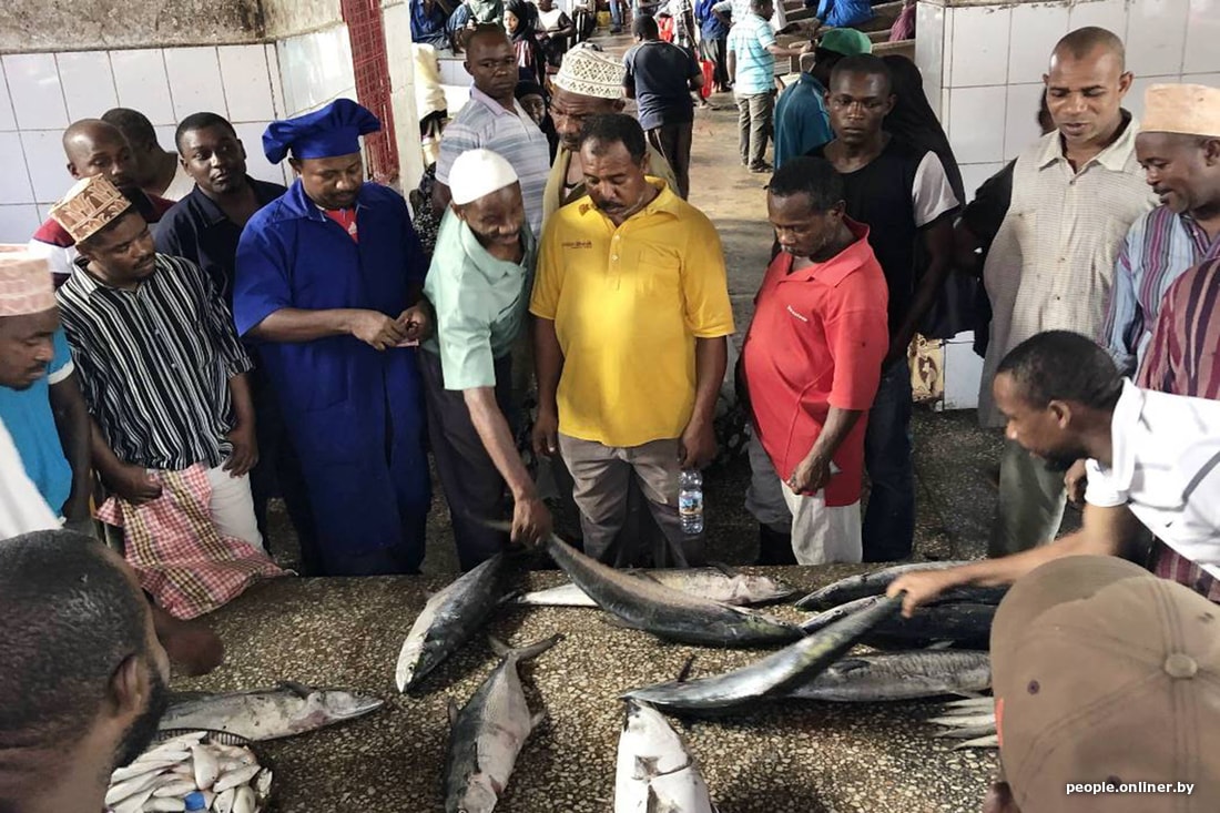 Во-вторых, рынок Дорожани. Здесь большой выбор фруктов, овощей, специй. Ну и, конечно, даров моря: креветок, крабов, мидий, осьминогов и рыбы. Интересно, что рыбу продают как на аукционе: товар выкладывают на стол, а покупатели уже торгуются за него. При нас тунец килограммов на 10 ушел за 27 тыс. шиллингов (около 25 белорусских рублей). В одном из отчетов турист описывал, как поехал на морскую рыбалку, поймал там марлина на 70 килограммов и продал на рынке за $100, почти полностью окупив стоимость рыбалки. В общем, на это стоит посмотреть. Правда, запах из-за жары не самый лучший.