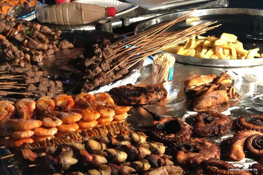 Вечером персонал кафе выносит столики прямо сюда. На месте можно самому с прилавка выбрать свежую рыбу и другие морепродукты, которые тебе тут же приготовят.