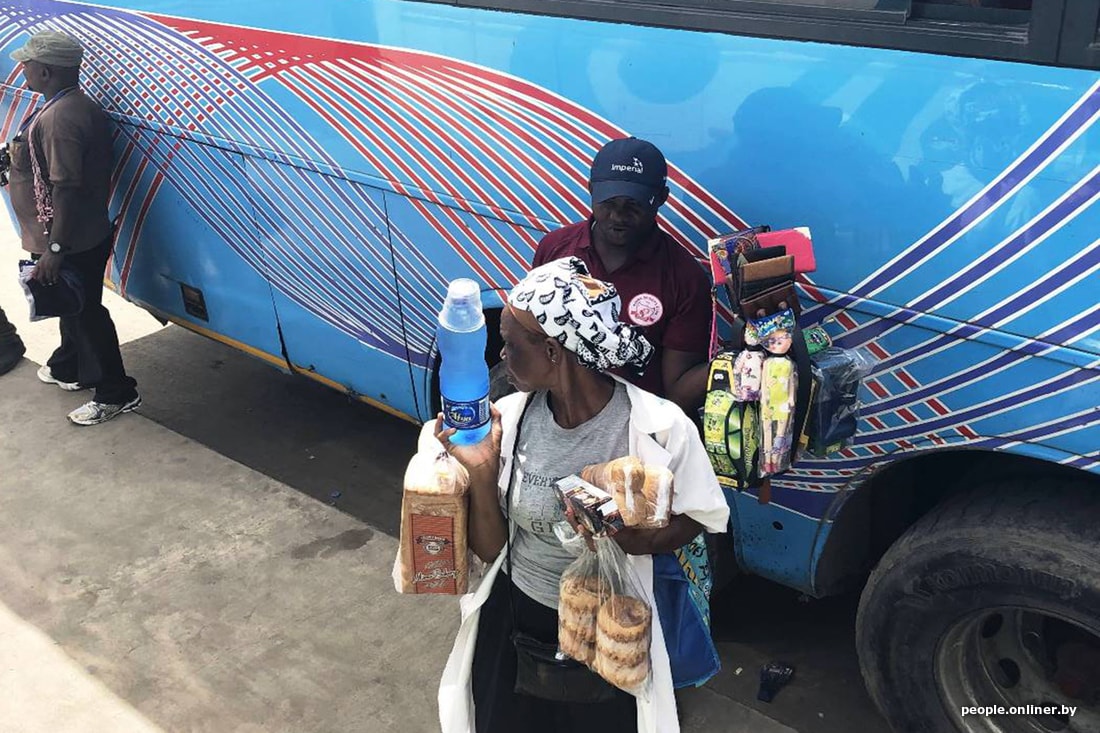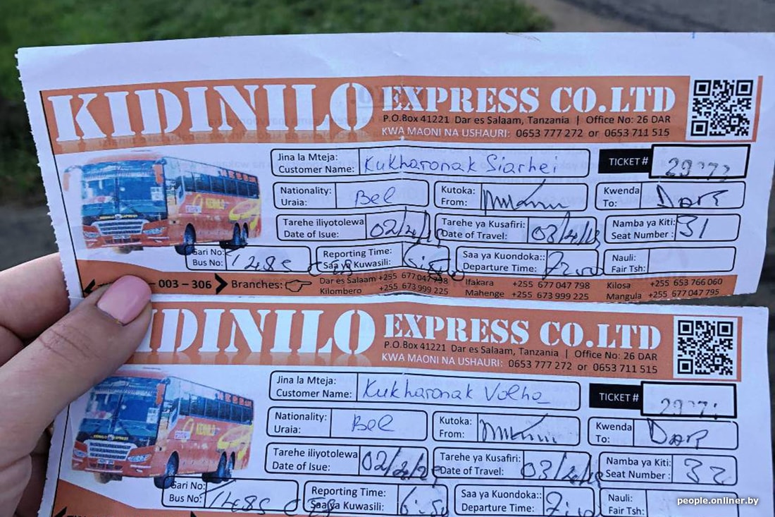 Рано утром мы направились на паром, который довез нас с острова на материковую часть Танзании. Потом из порта на такси до автовокзала, и дальше 6 часов в автобусе до национального парка Микуми с остановками на промежуточных станциях. И это не просто остановки, это центры торговли! Через окна можно купить не только поесть-попить, но и одежду с обувью, примерка проходит прямо в автобусе. Здесь же есть даже телевизор, на котором показывают клипы местного производства.