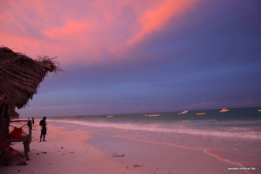 Пляж Паже, наверное, самый молодежный на Занзибаре. Сюда едут из всех стран ради лучшего в мире кайтинга — это катание на воде (серфинг) с помощью воздушного парашюта-крыла. Правда, в апреле для кайтинга был несезон.