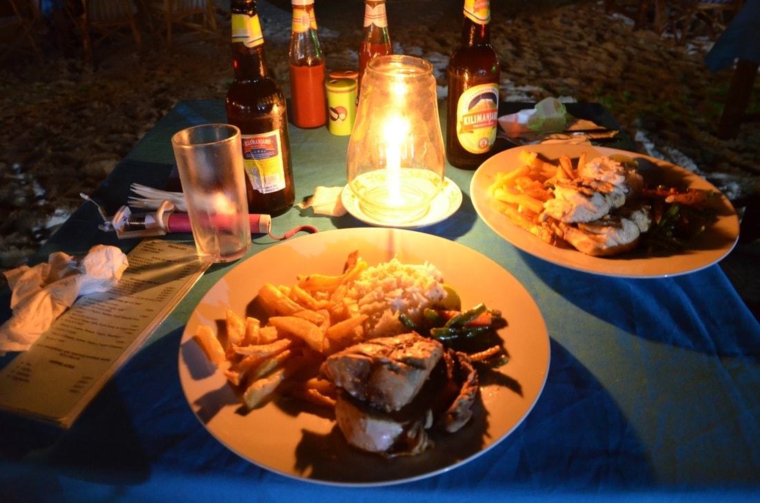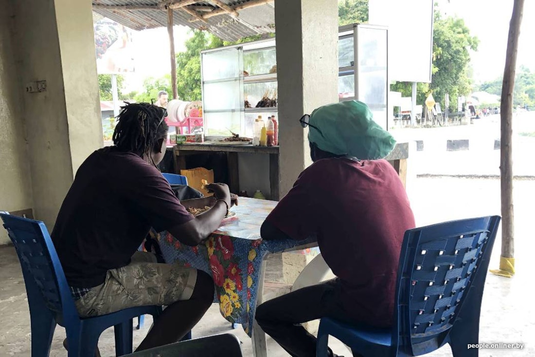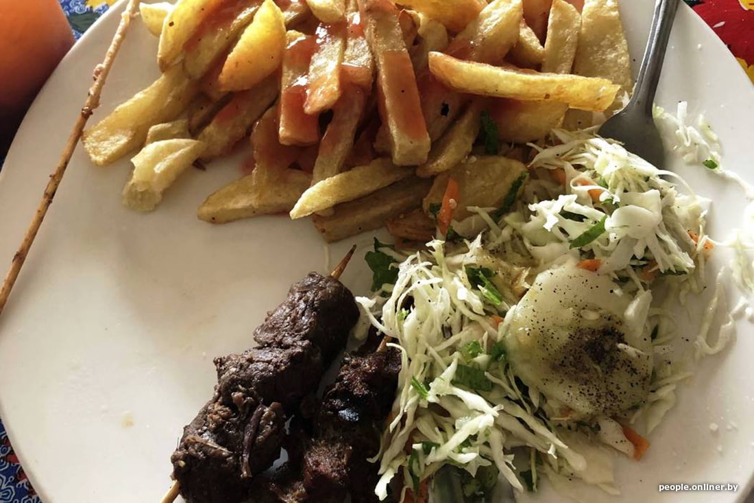 Что интересно, если в первые дни мы косились на местные придорожные кафешки-фастфуды, то к концу уже вошли во вкус. Африканцы те еще «бульбаши». Едят картофель не меньше, чем мы. Порция с картофелем фри, салатом и небольшим куриным шашлычком стоит $2. Также пробовали какие-то пирожки, лепешки и, конечно, жаренную на мангале кукурузу.