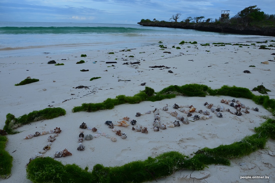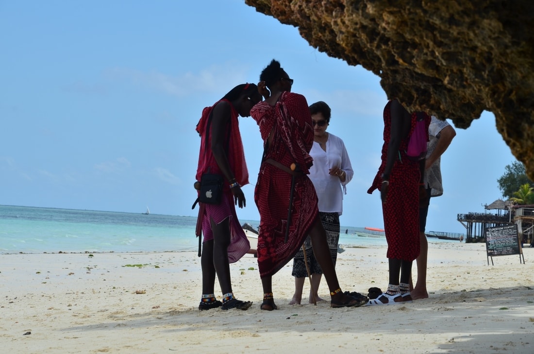 На пляже можно встретить аборигенов, одетых в красные национальные ткани с палкой в руках. Это масаи, племенной народ Африки. Предлагают сувениры, услуги гида, проводника на острове и не только.