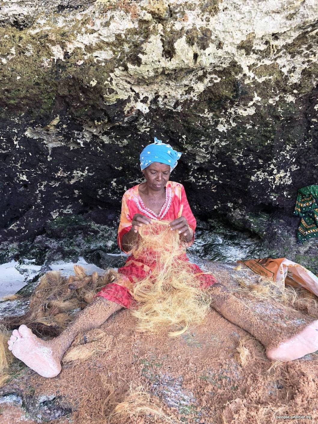 Но больше всего нам запомнился пляж Мтенде. Добраться сюда достаточно сложно, поэтому туристов практически нет. Местные ловят рыбу и осьминогов, женщины плетут веревки из кокосов. Жена даже устроилась в подмастерья и попробовала сама сделать веревку из кокоса. Это их настолько забавляло, что смех африканских женщин долго разносился по побережью.