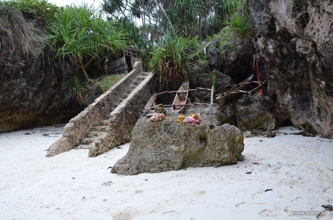 Одна из самых известных достопримечательностей Занзибара — это остров-ресторан The Rock. Его фото можно увидеть на открытках. Во время прилива он полностью окружен водой. За $1 лодочник вас завезет туда. Обратная поездка стоит уже $2, или вплавь, или ждать отлива.