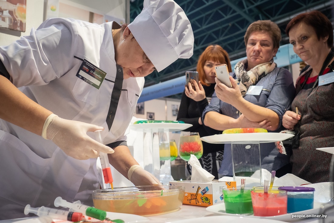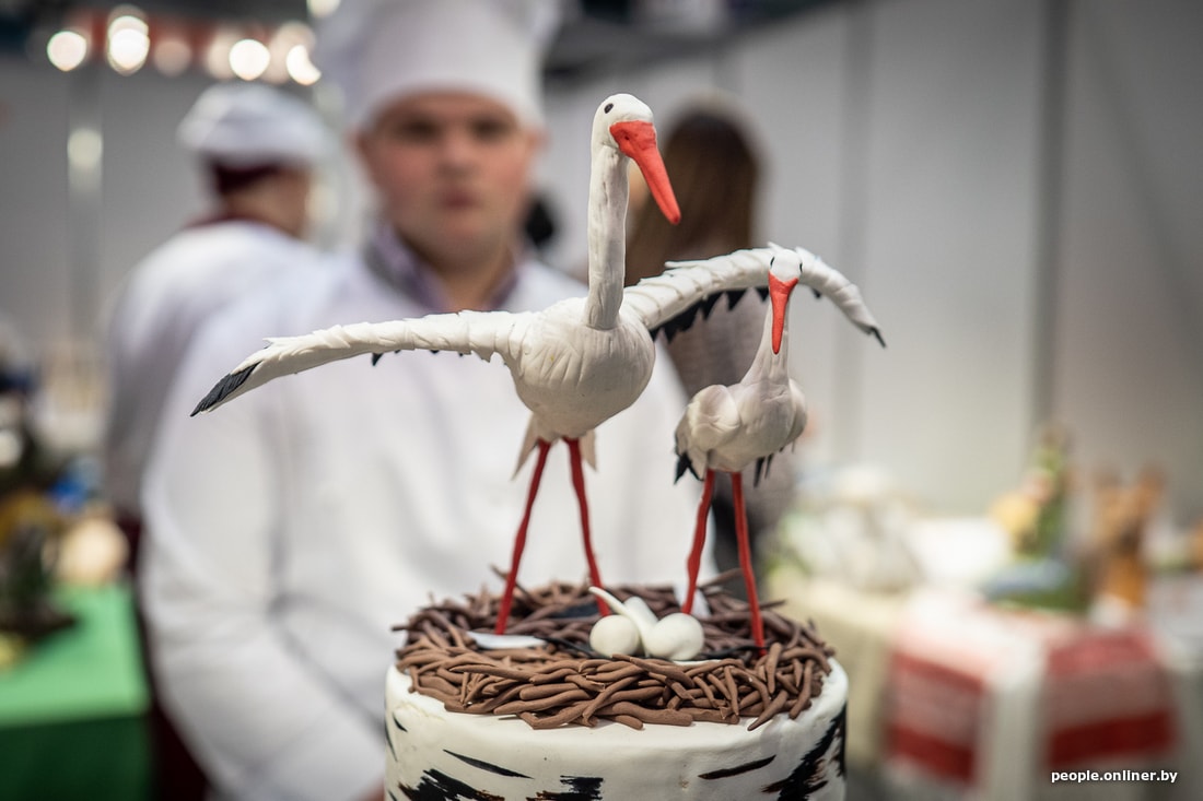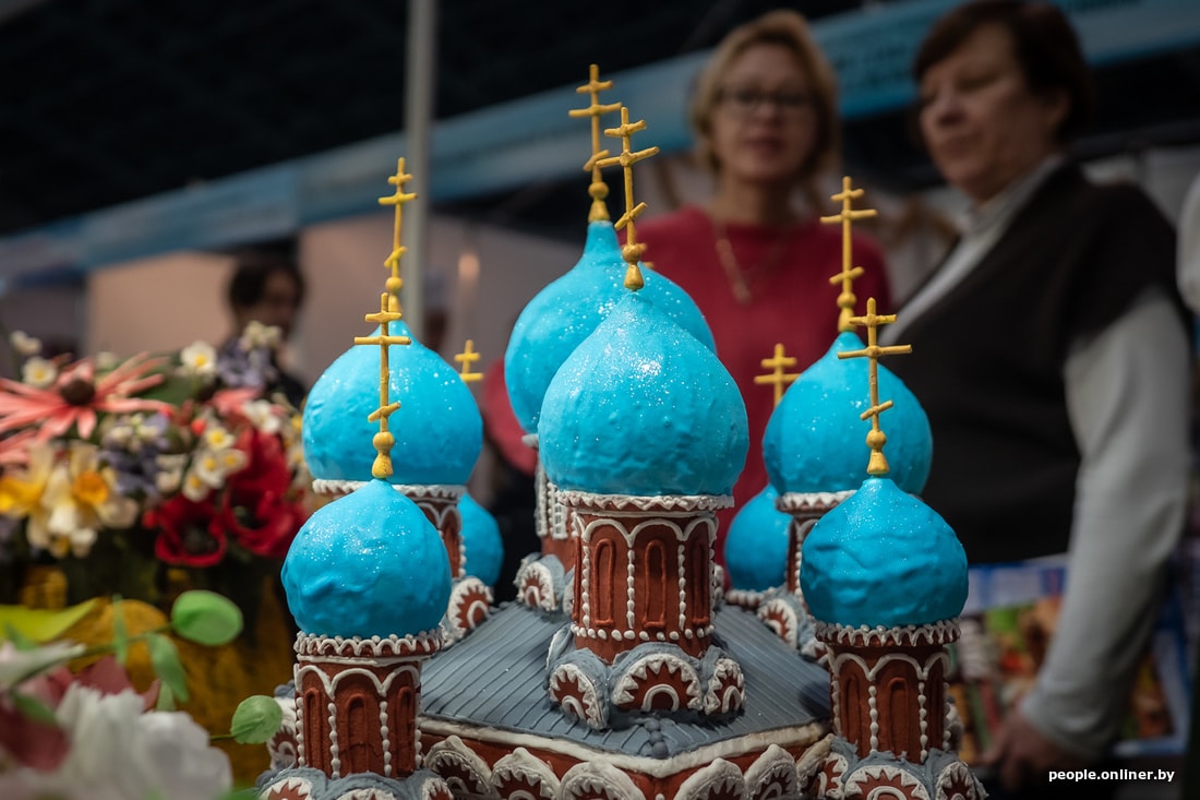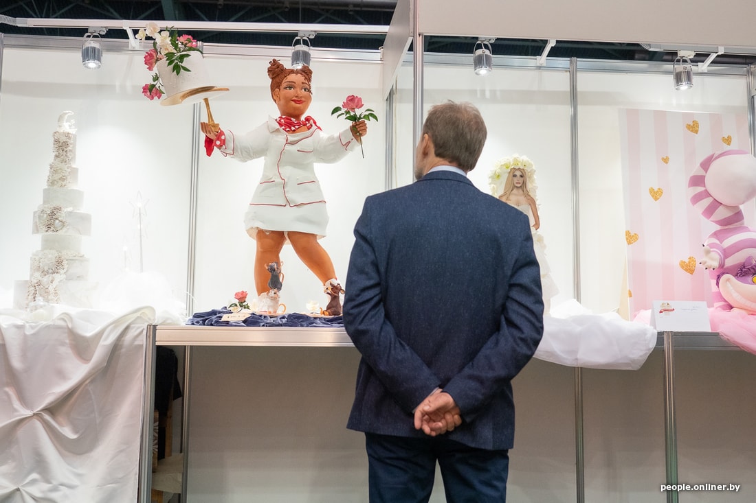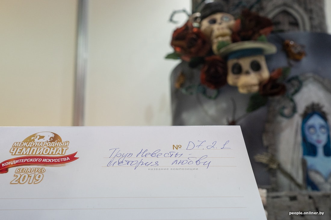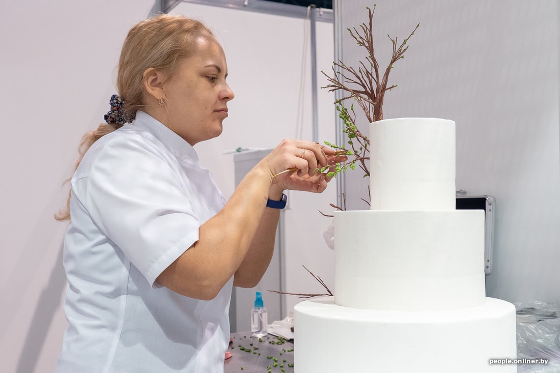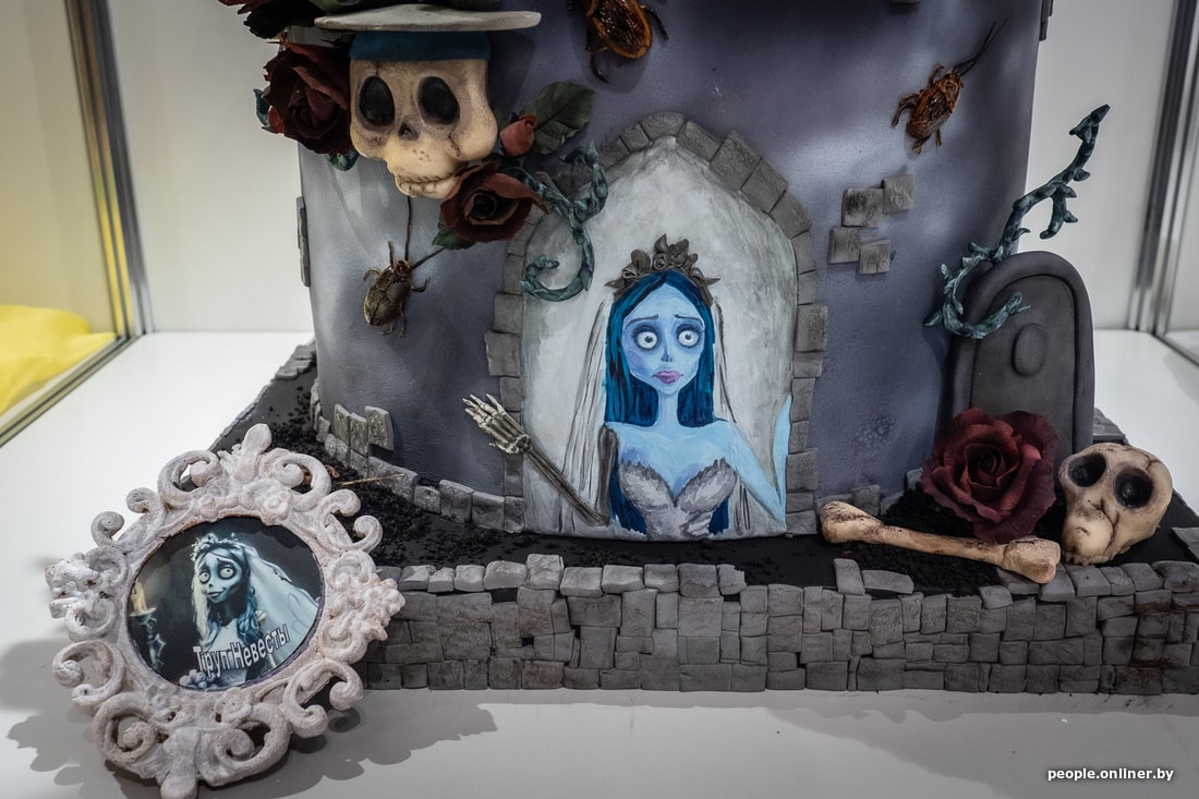 Еще на выставке соревнуются повара — здесь проходит Международный чемпионат кондитерского искусства. Пряничные домики, свадебные торты и... Названия сладких произведений искусства обычно лаконичны: «Фантазия», «Феерия зимы», «Малая родина». Взгляд «спотыкается» на торте «Труп невесты — история любви».