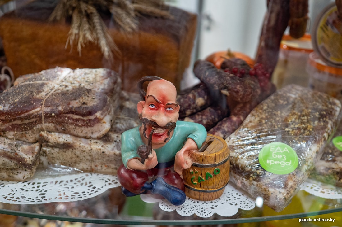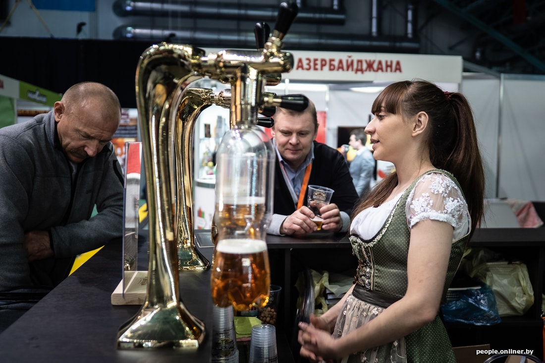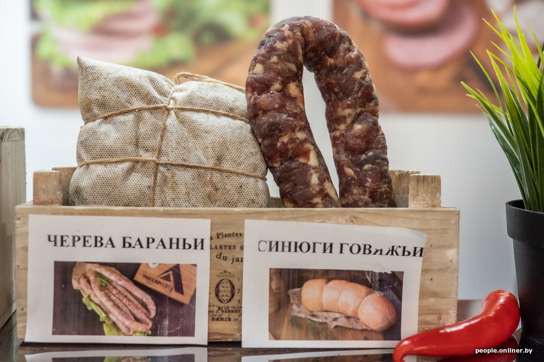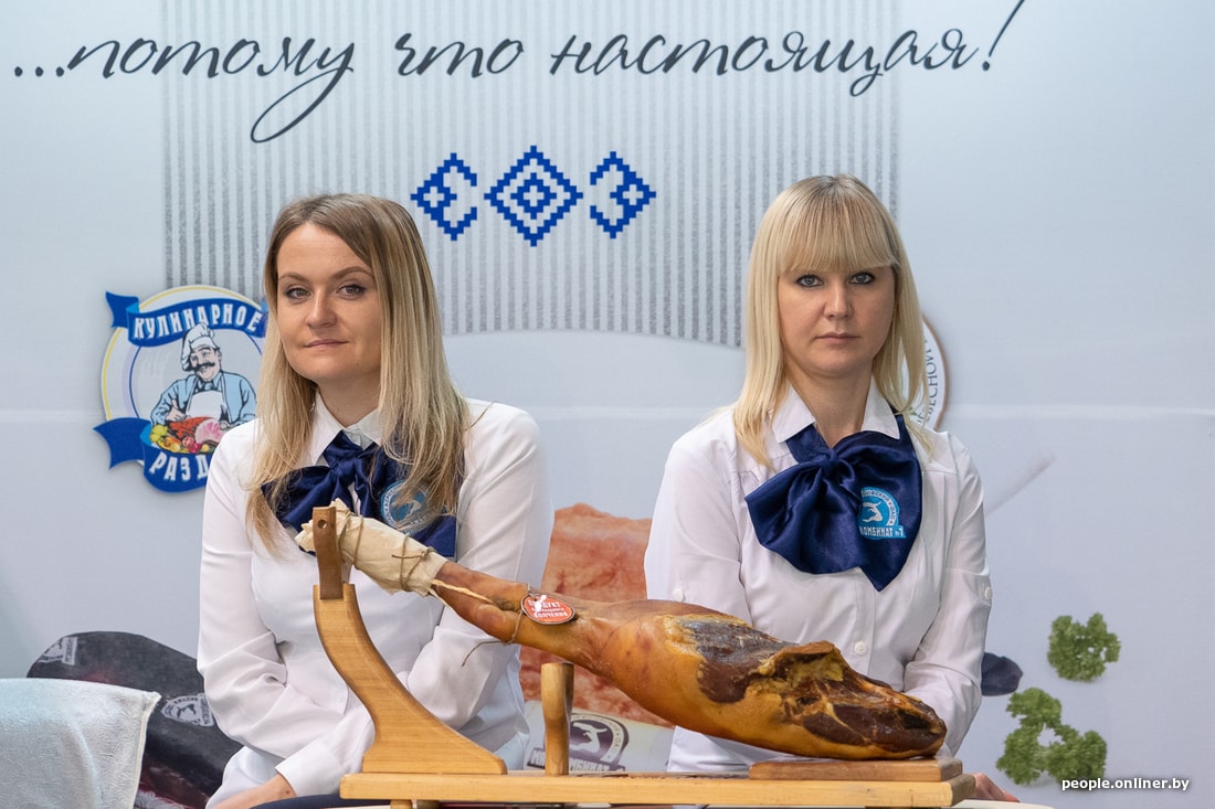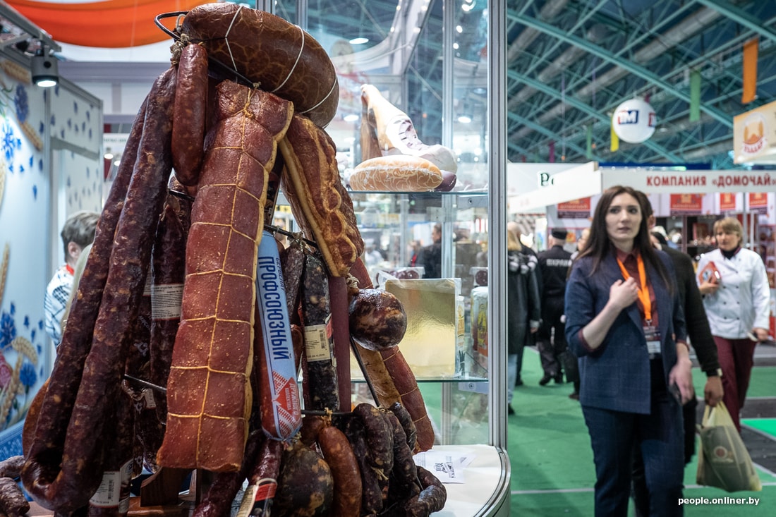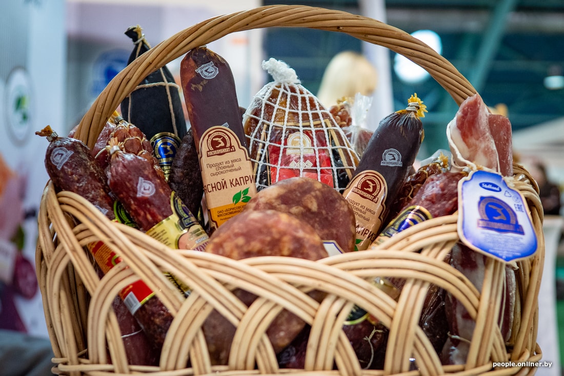 Самые частые дегустации — для любителей сыра. Можно попробовать белорусский пармезан и маасдам. Только, по мнению посетителей, вкус как-то не очень соответствует названным видам сыров. Наверное, поэтому большинство дегустаторов собираются у стендов с пивом и мороженым. Из стандартного: на продвыставке по-прежнему актуальны колбасные букеты.