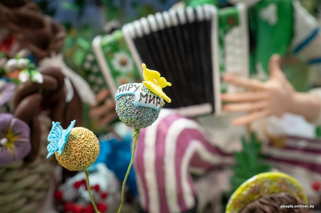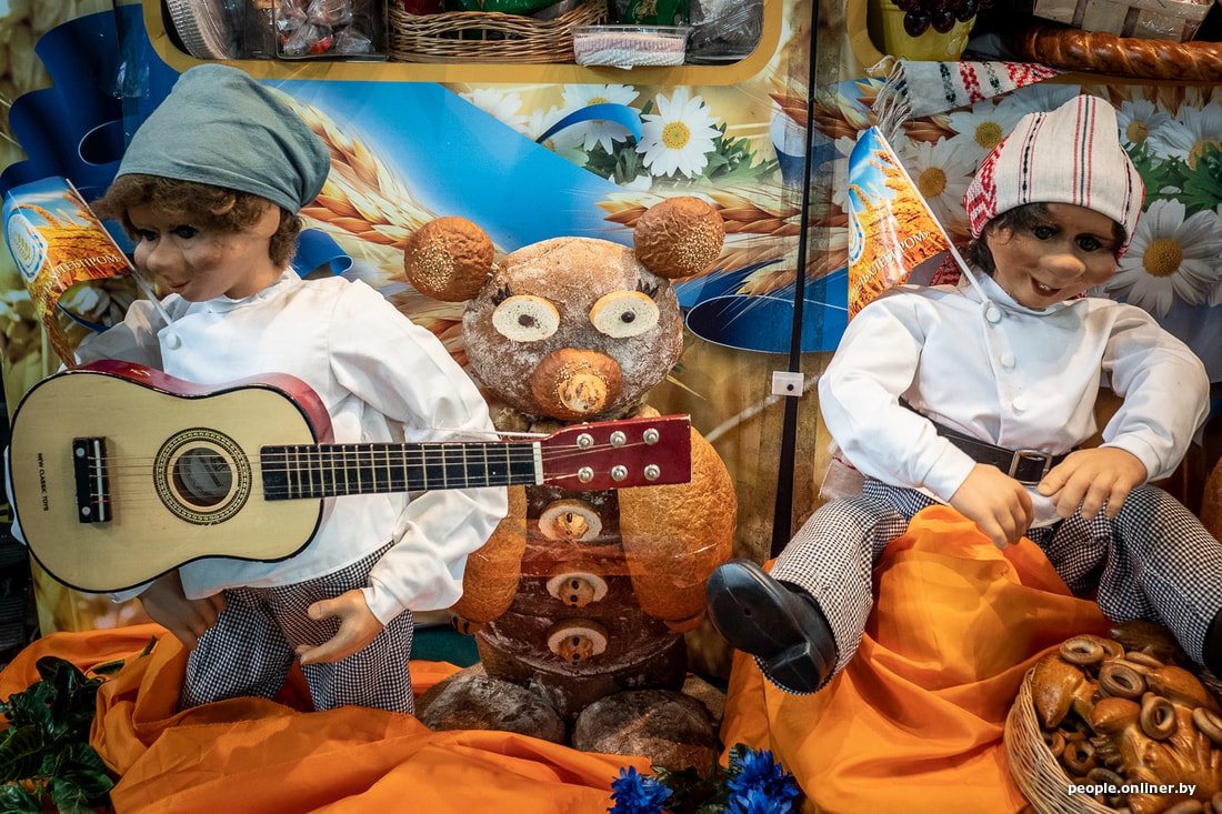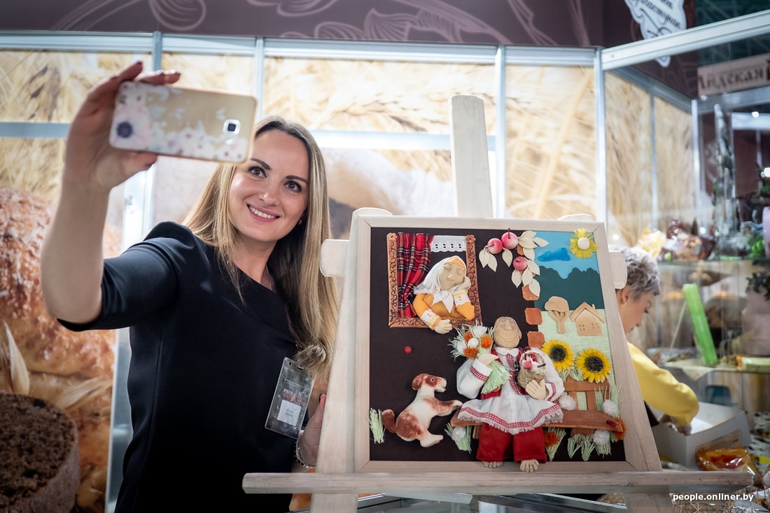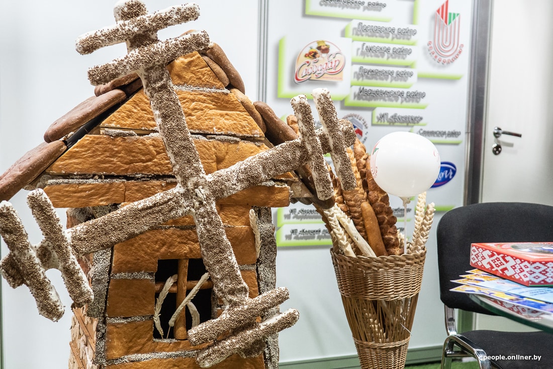 Выставка «Продэкспо» встречает гостей в прямом смысле хлебом и солью. На стендах «Белкоопсоюза» и других хлеборобов страны представлено то же самое, что и на полях во время «Дажынак», только уже выпечка. Куда пойдет хлебушек после выставки? Представители стенда говорят, что «на корм скоту и бедным людям».