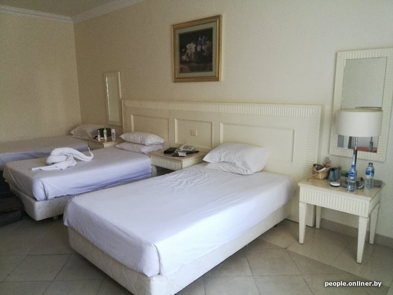 — Нужно хорошо подумать, прежде чем ехать. Когда прилетели, на ресепшене попросили номера получше. Привезли шоколадки «Аленка» (египтяне их очень любят). Нам предложили комнаты за доплату в $10 в день. Согласился, ведь просто так у них ничего не делается. Номера самые простые, но неплохие: отель все-таки пятизвездочный. Бывает и похуже. Правда, теще сначала дали «убитый» номер, где не работали кондиционер (было очень душно) и сейф. Чтобы сменить номер, понадобилось три часа, это были ругань и нервы.