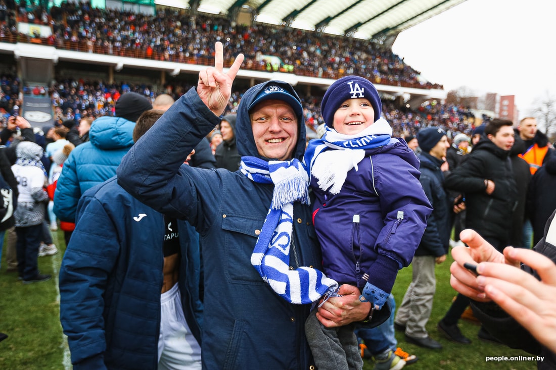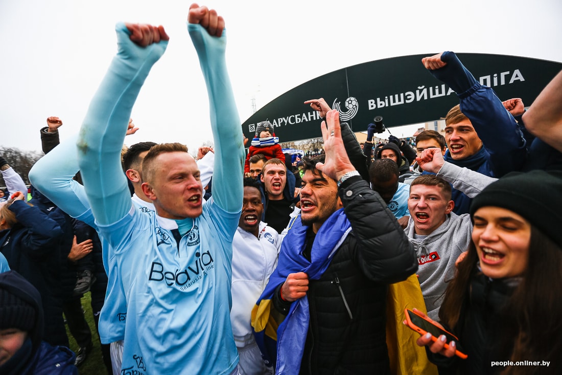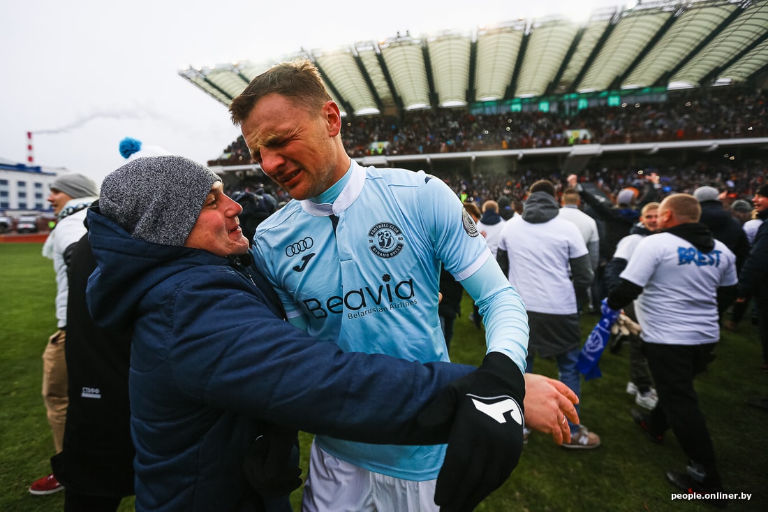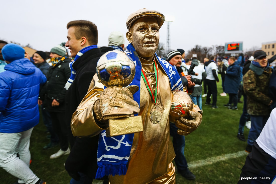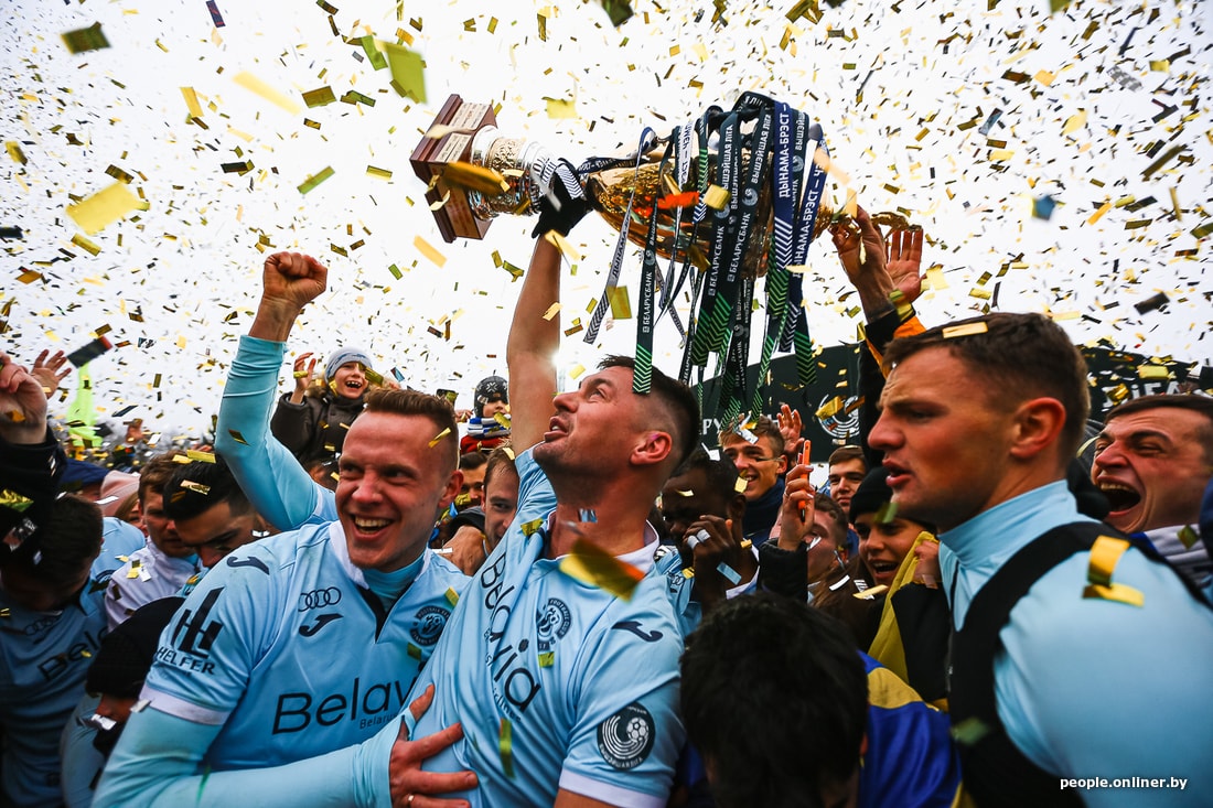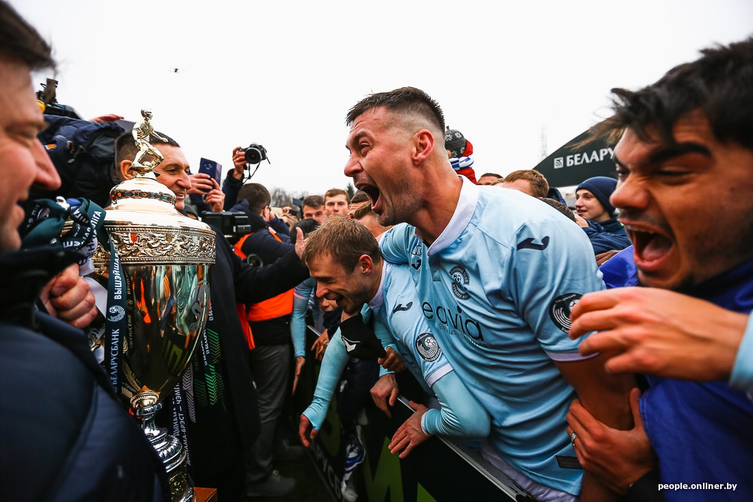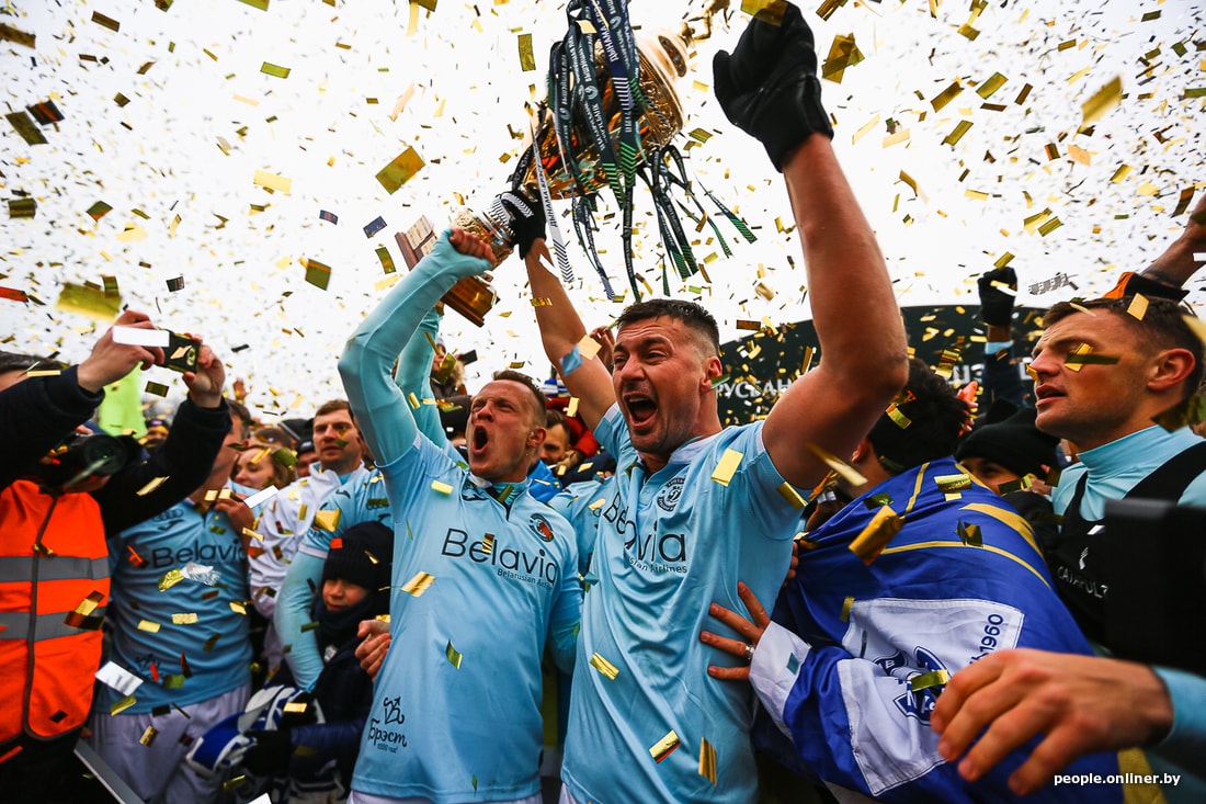 Сразу с финальным свистком болельщики ринулись на поле. Их сперва пытались сдерживать стюарды, но после перестали. Вышло массово и красиво. Из стадионных динамиков лилась песня «День Победы», из глаз Артема Милевского — слезы. Уроженцу Минска, который волею судеб стал украинцем, было принципиально важно под конец карьеры взять золото на исторической родине. Кубок вручал руководитель АБФФ Владимир Базанов, некогда глава брестского «Динамо», в воздух летела золотая мишура.