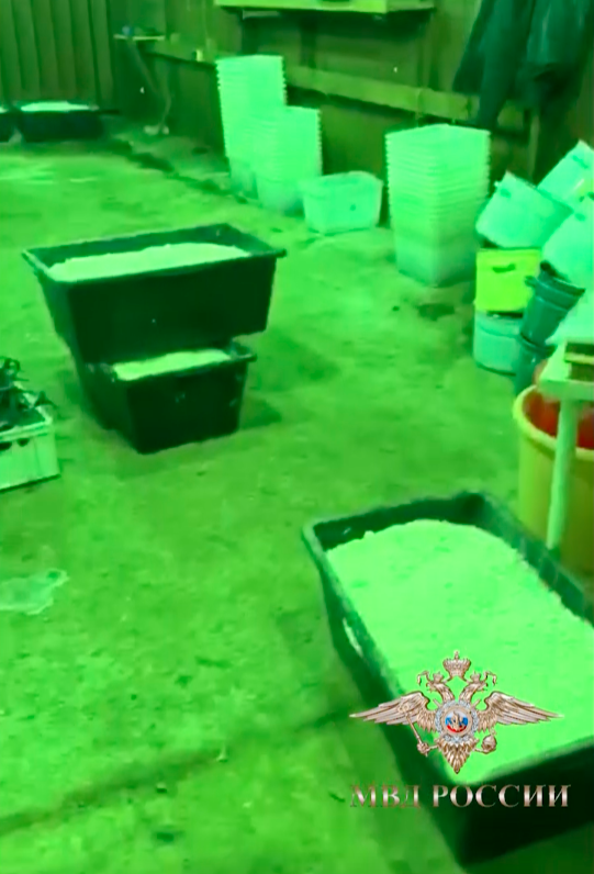 Во время обыска обнаружено около 80 тонн прекурсоров наркотических веществ и более 2 тонн порошкообразного вещества. Исследования показали, что это синтетический наркотик альфа-PVP, или «соль». Кроме этого, полицейские изъяли более 5,8 тонны «полуфабриката», из которого изготавливался этот наркотик. По предварительным оценкам, сумма, которую могли бы выручить наркоторговцы, составляла бы от 7 до 10 млрд рублей. Это $109—156 млн.