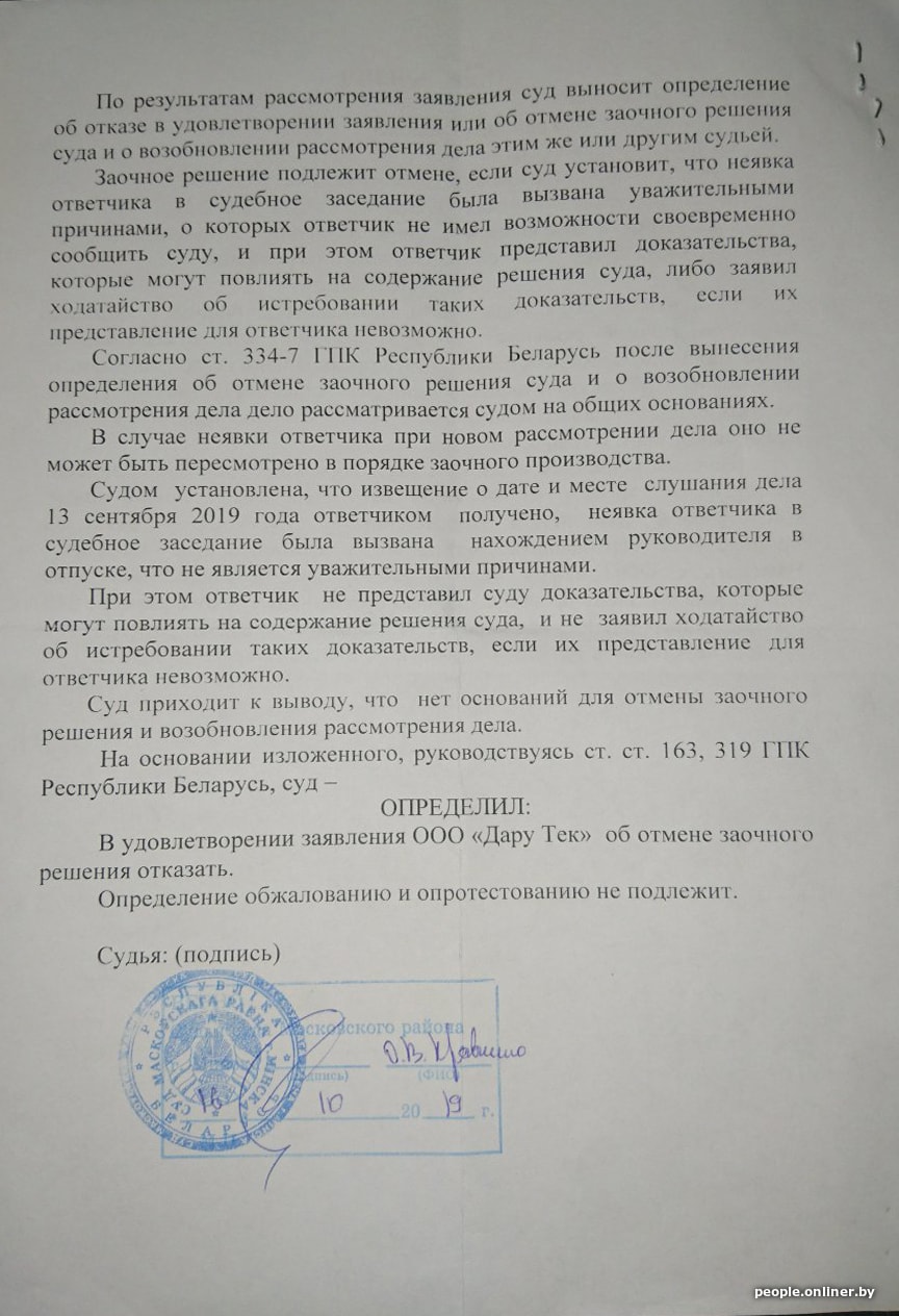 На рассмотрение апелляции никто из представителей Daroo не пришел. Коллегия постановила оставить решение без изменений. Когда документы вернутся в районный суд, будет начато исполнительное производство, чтобы взыскать с Daroo деньги. Уже набежало порядка 2,3 тыс. рублей,
