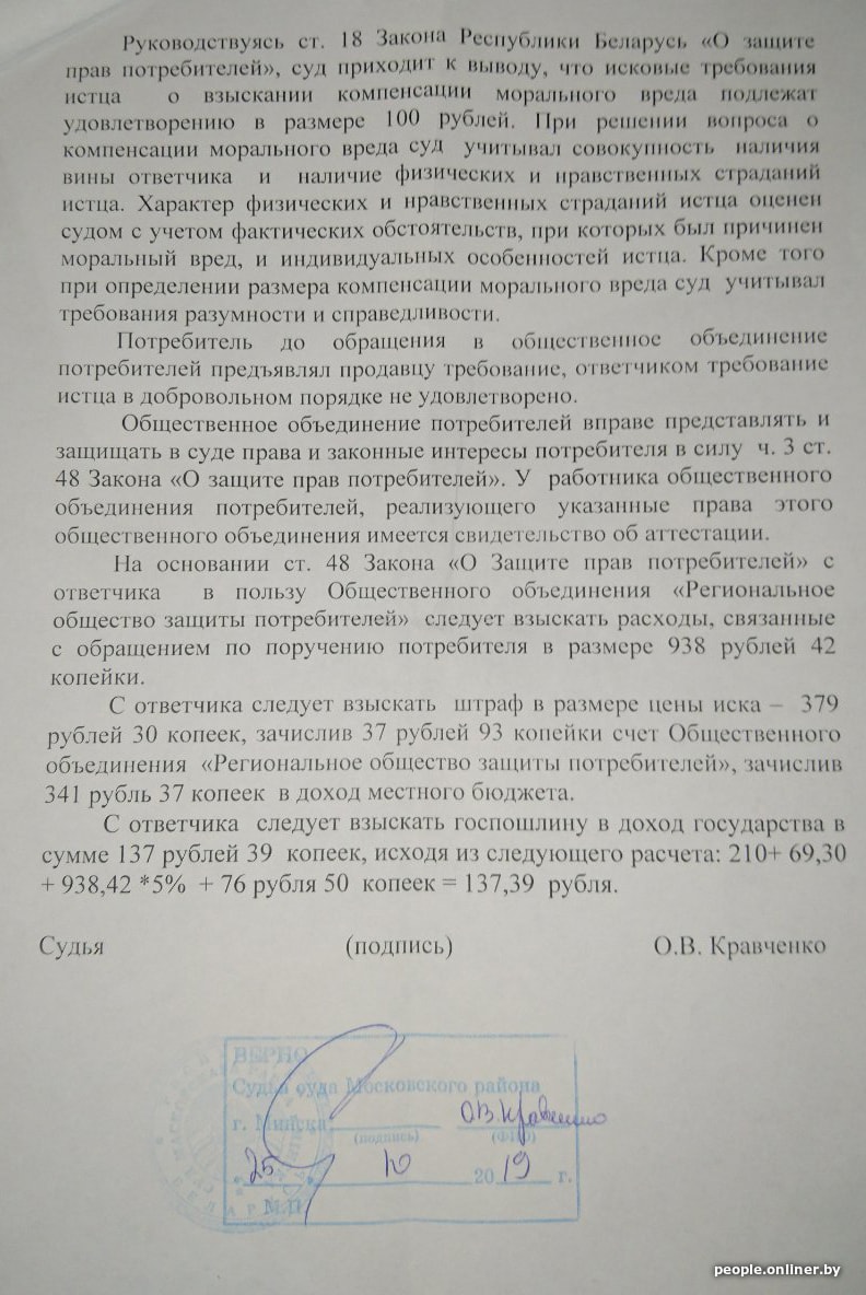 — Это противоречит п. 1 ст. 880 ГК (по сделке, совершенной комиссионером с третьим лицом, приобретает права и становится обязанным комиссионер, хотя бы комитент и был назван в сделке или вступил с третьим лицом в непосредственные отношения по исполнению сделки. — Прим. Onliner). По их мнению, мы должны были требовать возврат средств у исполнителя услуги. В то же время согласно оферте Daroo: «2.3. Аванс, внесенный Продавцу Покупателем, засчитывается в качестве оплаты за товары/работы/услуги в день реализации товаров/работ/услуг Комитентом Предъявителю сертификата». То есть, по их мнению, мы должны были требовать вернуть деньги у третьего лица, которое их не получало, — говорит минчанка.