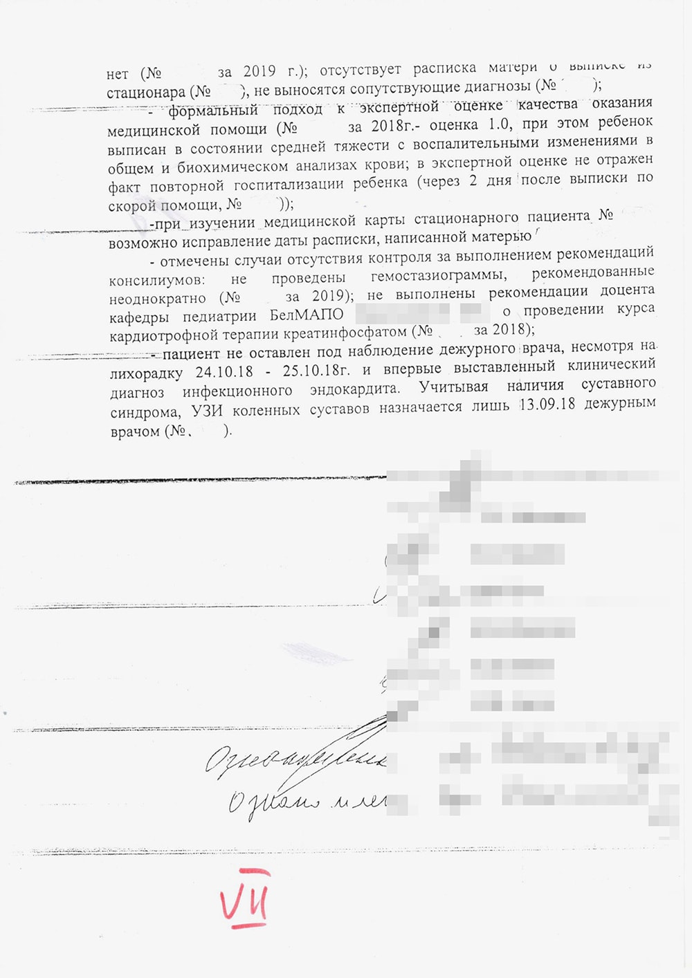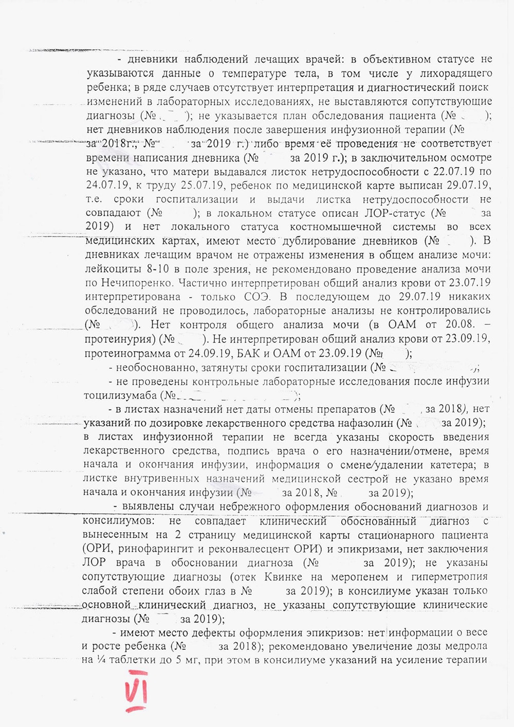 — Хотя я до сих пор не понимаю: за что? За участие в постановке правильного диагноза? Или за то, что она участвовала в консилиуме? Или все-таки за то, что была председателем комиссии при разбирательстве жалобы и в справке, которую выдали, написали правду? — возмущается Николай и показывает заключение комиссии, в котором через запятую перечисляются все ошибки. — Жаль, что в нашем здравоохранении работают отдельные врачи, для которых собственная выгода, самоутверждение за счет пациентов, спекуляция детским здоровьем являются приоритетом в работе. Страшно осознавать и то, что вышестоящие инстанции склоняют работников здравоохранения к взаимовыгодной коллегиальности.