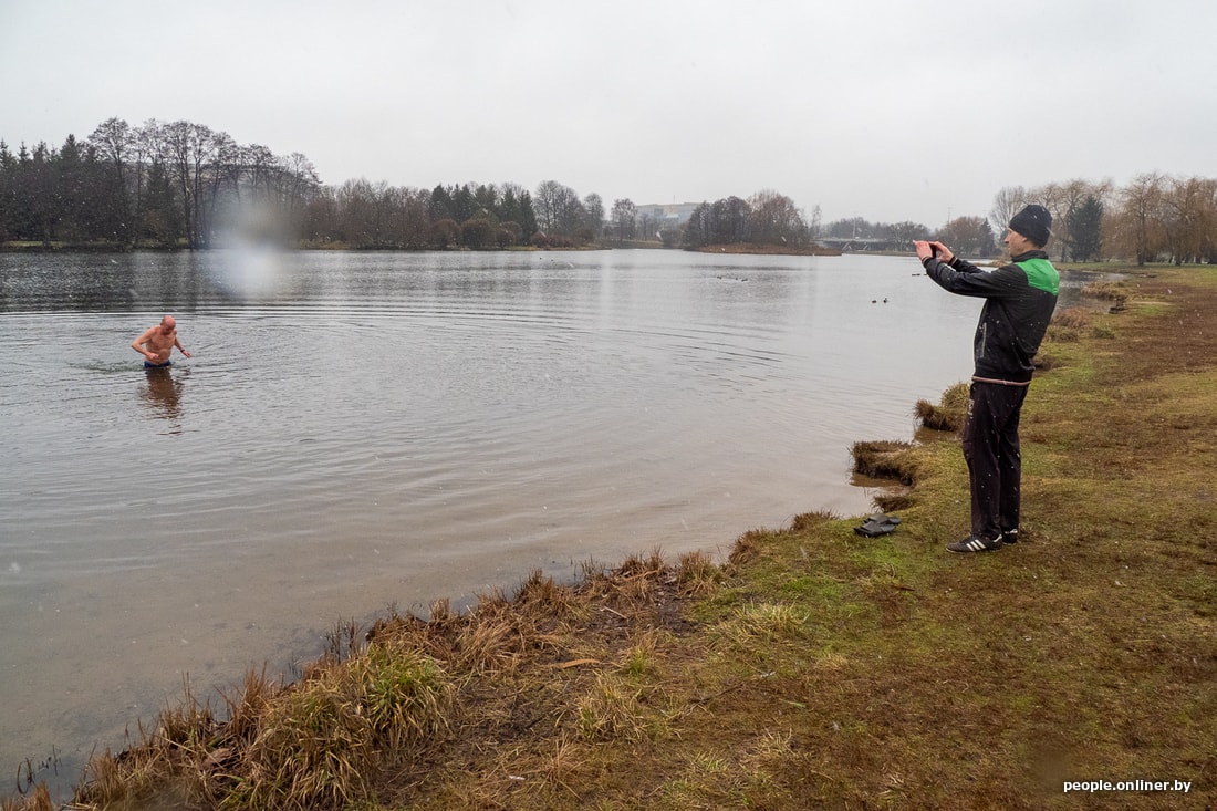 — Жена надо мной смеется, со мной купаться не хочет, — улыбается Дмитрий. — Но один раз приходила сюда (в парк Победы. — Прим. Onliner), снимала меня. Она не понимает, в чем прикол. Но я стал гораздо легче переносить холод, хотя больше адаптирован к теплу. Меня, правда, сейчас подколачивает и замерзли руки — погода не супер. В Словакии в мороз после купания еще в горы ходил с сыном.