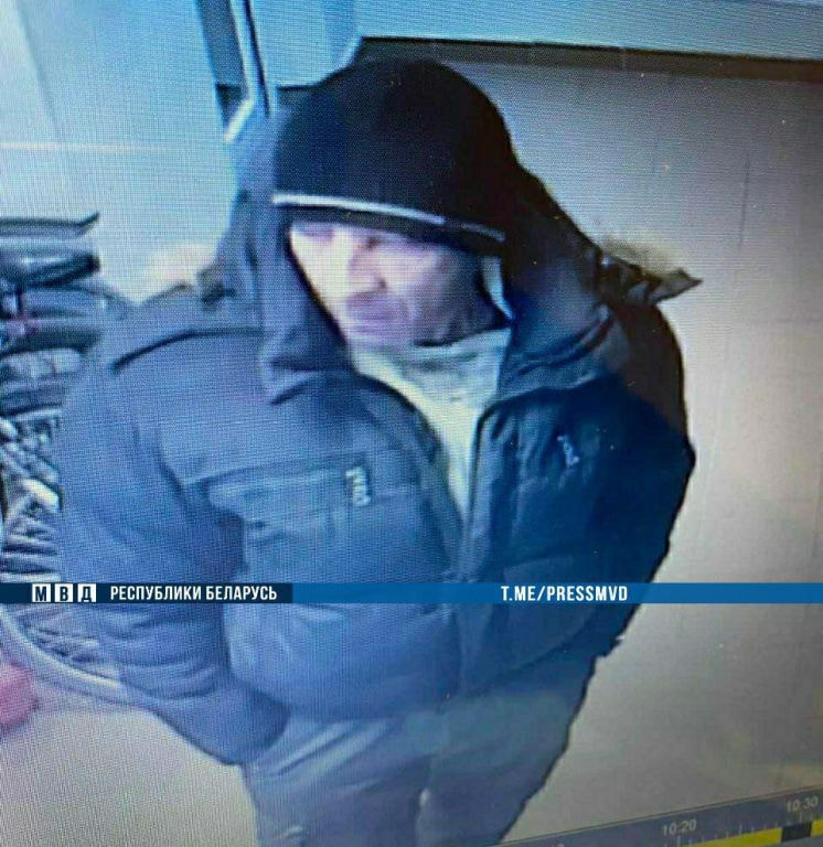 ГУВД Минска распространило снимки и приметы подозреваемого: на вид 45 лет, рост 180—185 см, худощавый. Был одет в серую вязаную шапку, черную куртку средней длины, болоньевые черные брюки, черные кроссовки.