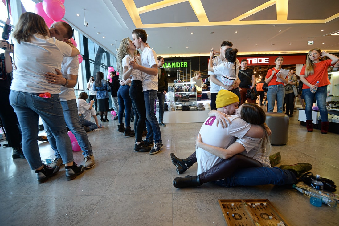 Сегодня в Минске впервые прошел поцелуйный марафон. Он начался в 14:00 в торговом центре Galleria Minsk. Мероприятие было приурочено к приближающемуся Дню святого Валентина, а поучаствовать в нем пригласили влюбленных белорусов. По сути это был конкурс на лучший поцелуй — не только по длительности, но и по креативности, и многие превратили процесс в своеобразный перформанс. Главный приз, за который шла борьба, — романтическое путешествие на остров в Средиземном море.