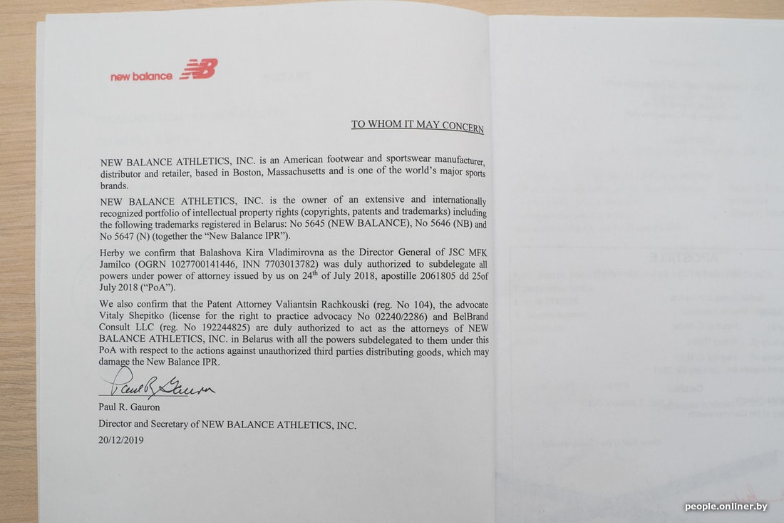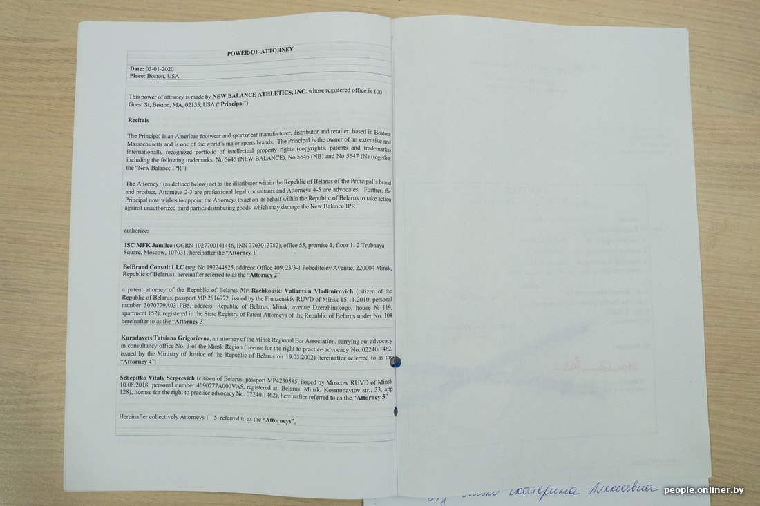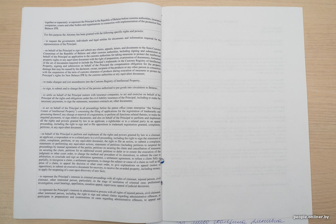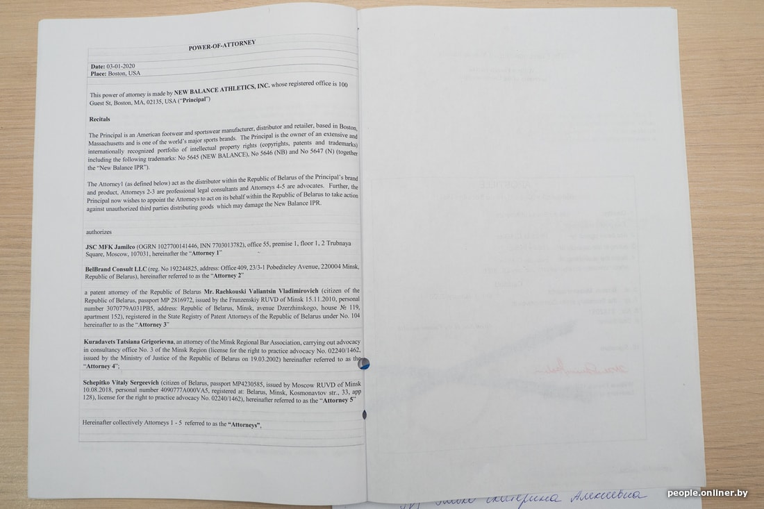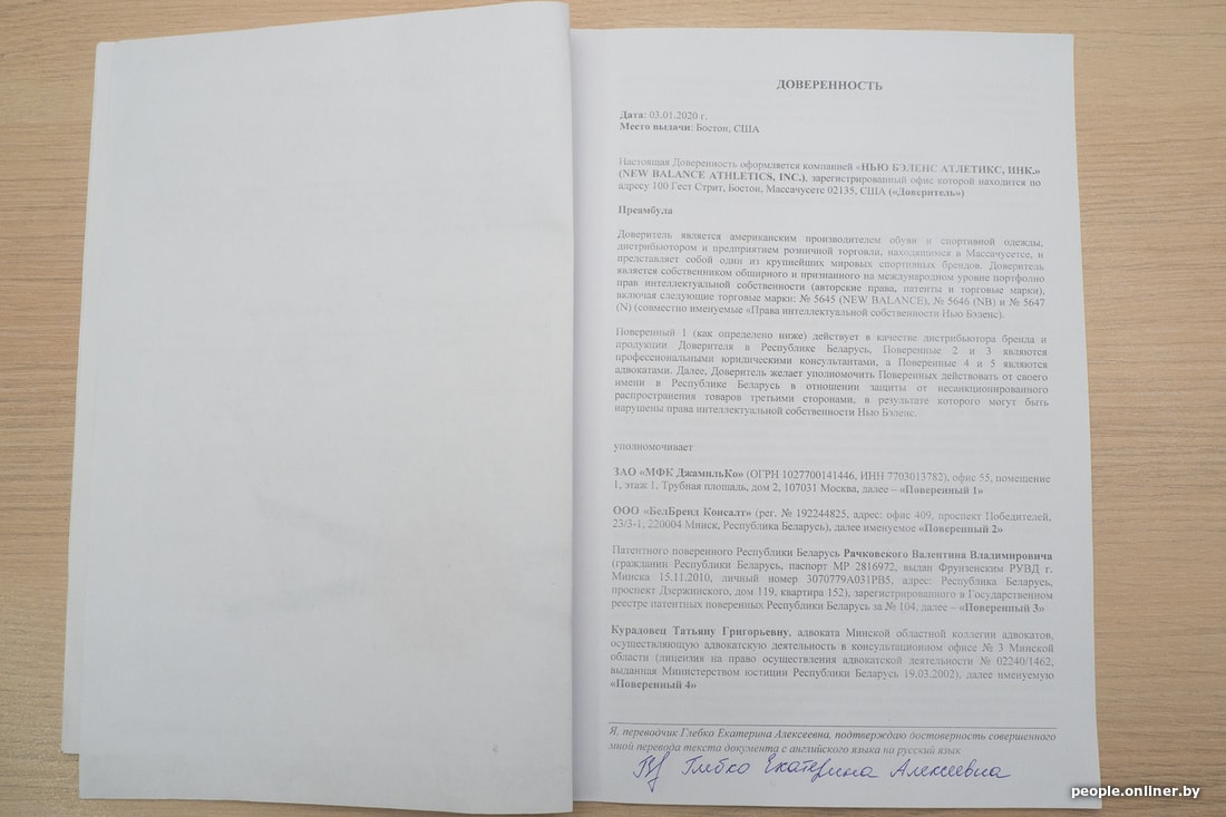 В доверенности нотариус указал, что дилер действовал на основании другой доверенности, якобы выданной американской компанией New Balance. На просьбы ознакомиться, со слов моего доверителя, с американской доверенностью патентный поверенный устраивал скандалы с переходом на личности, обвинял в безграмотности. Появились подозрения: в чем проблема предъявить законную доверенность? Если она, конечно, законная.