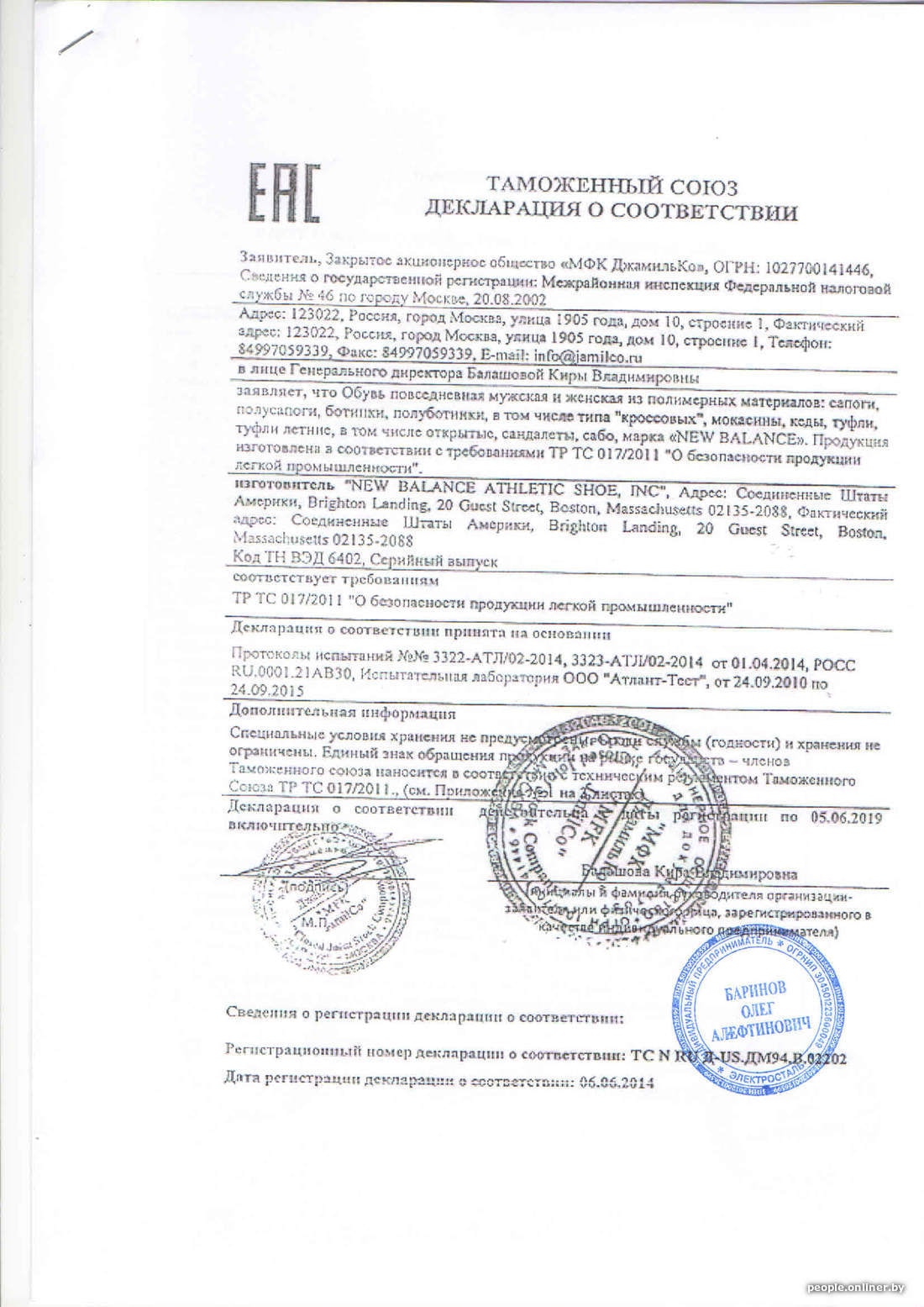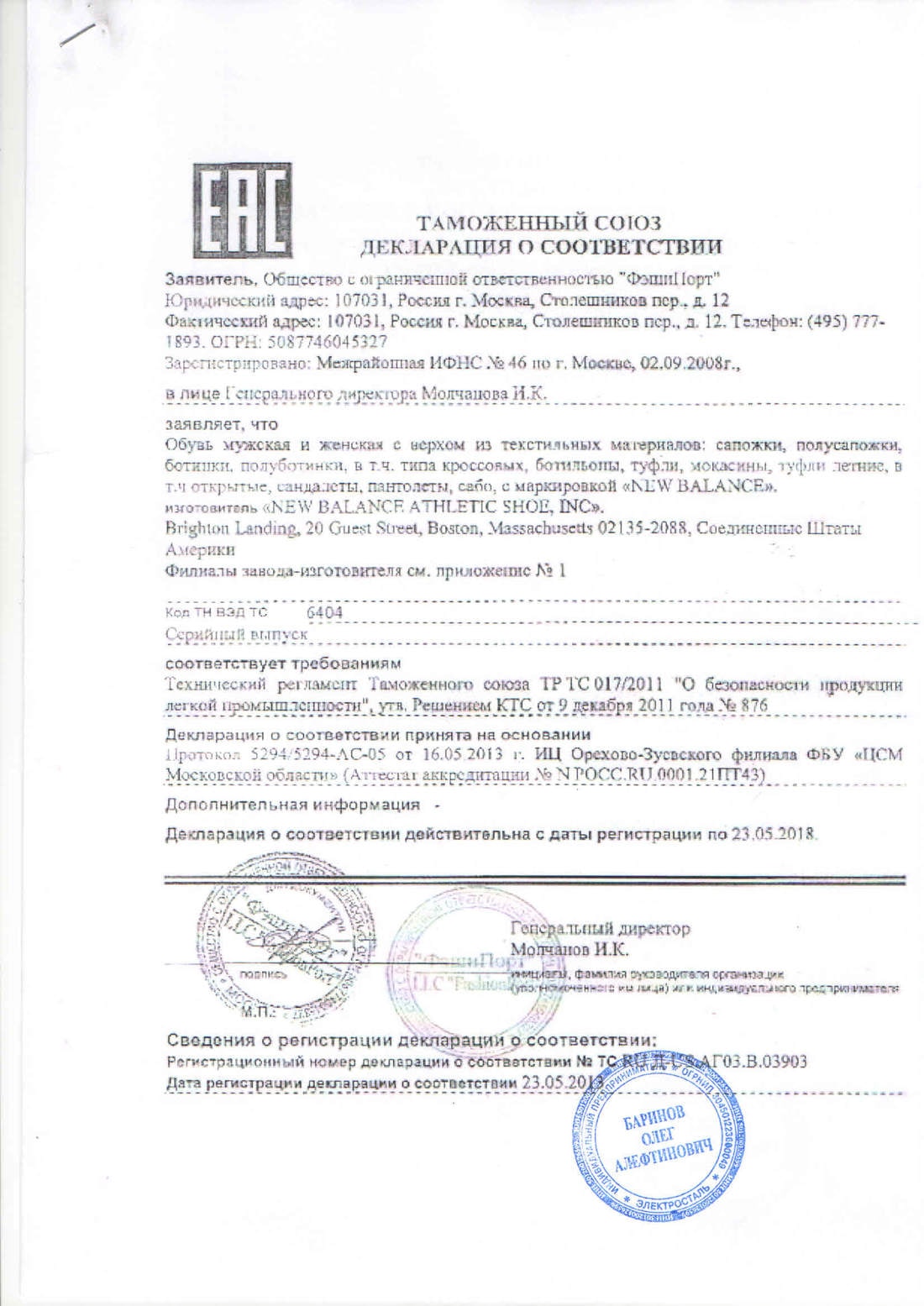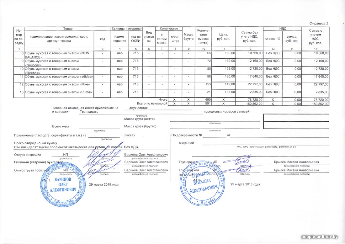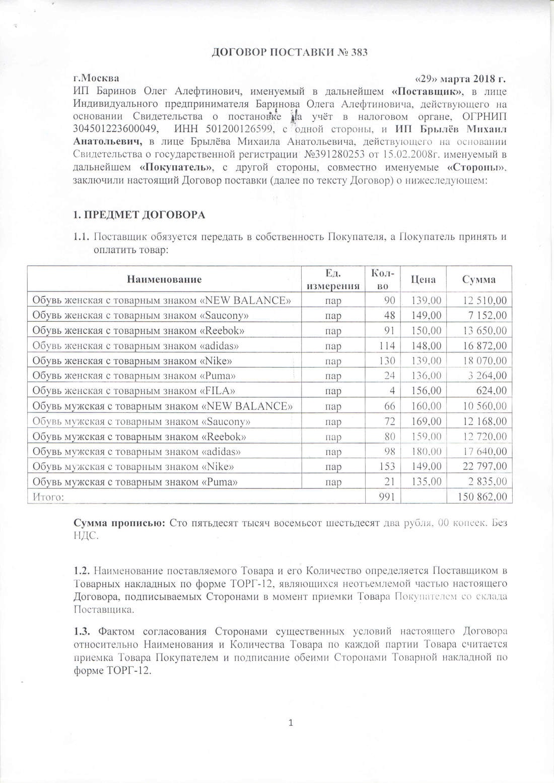 При этом приобретение кроссовок у официального дистрибьютора витебский ИП подтверждал ксерокопией декларации о соответствии, которая, как было установлено в процессе, ни ему, ни его поставщику держателем декларации не передавалась. Потребителям по этой же ксерокопии Брылев предъявлял товар как оригинальный. Источник происхождения обуви на рынке ЕАЭС никакими товаросопроводительными документами не подтвержден. Таможенные органы связывались с российскими коллегами: след поставки обрывается на российском предпринимателе, а его таможенным органам РФ обнаружить не удалось.