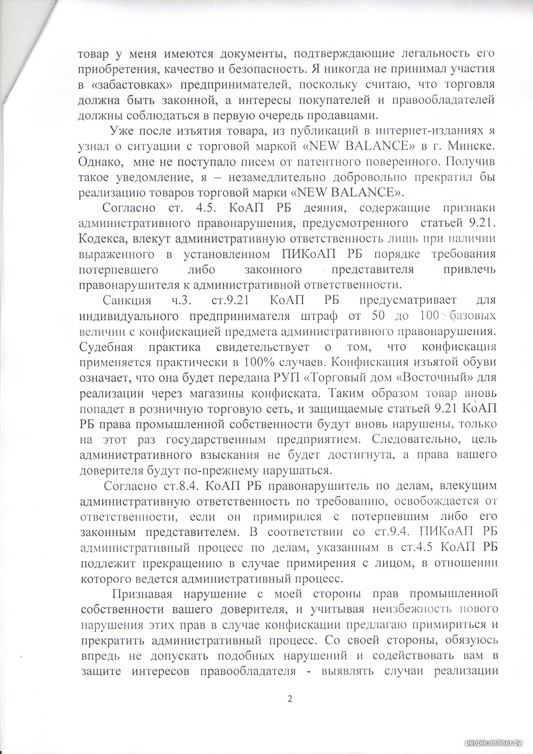 Мою доверительницу привлекли к административной ответственности в феврале 2019 года. Вину в правонарушении она признала, уплатила крупный штраф и прекратила продавать кроссовки New Balance, как и другие продавцы лицензионного товара.