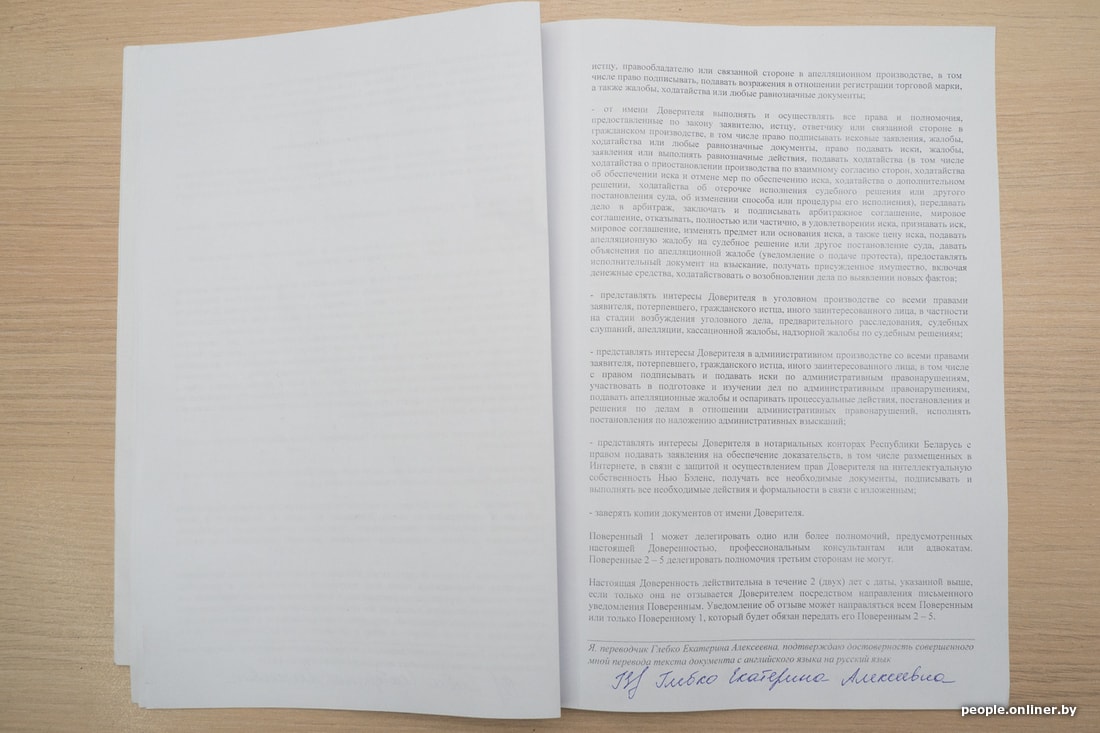У белорусского патентного доверенного есть доверенность от российской компании в порядке передоверия. И там указано, что россияне выдают доверенность на основании американской доверенности с апостилем. Но что мы увидели, когда документы все-таки показали в суде?