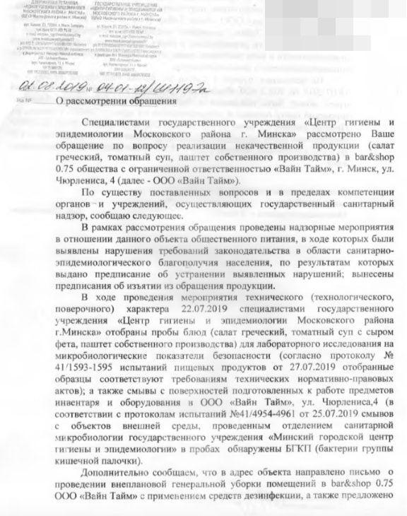 — После выписки я ходил в бар, но беседы не получилось. Мое поведение казалось им подозрительным: зачем делал фото, почему пришел в пятницу, зачем обратился в санстанцию и так далее. В возмещении расходов на лечение (около 50 рублей) отказали, — говорит Максим.