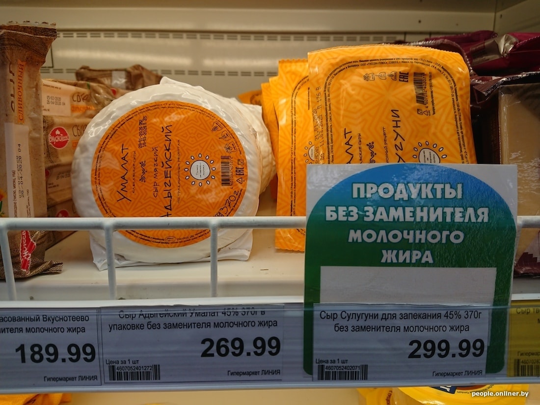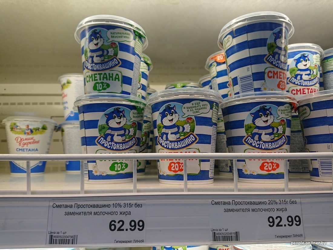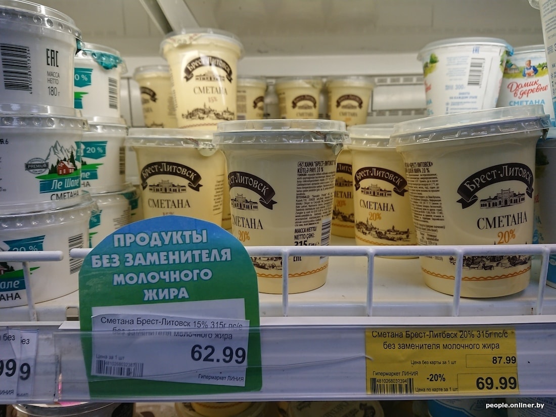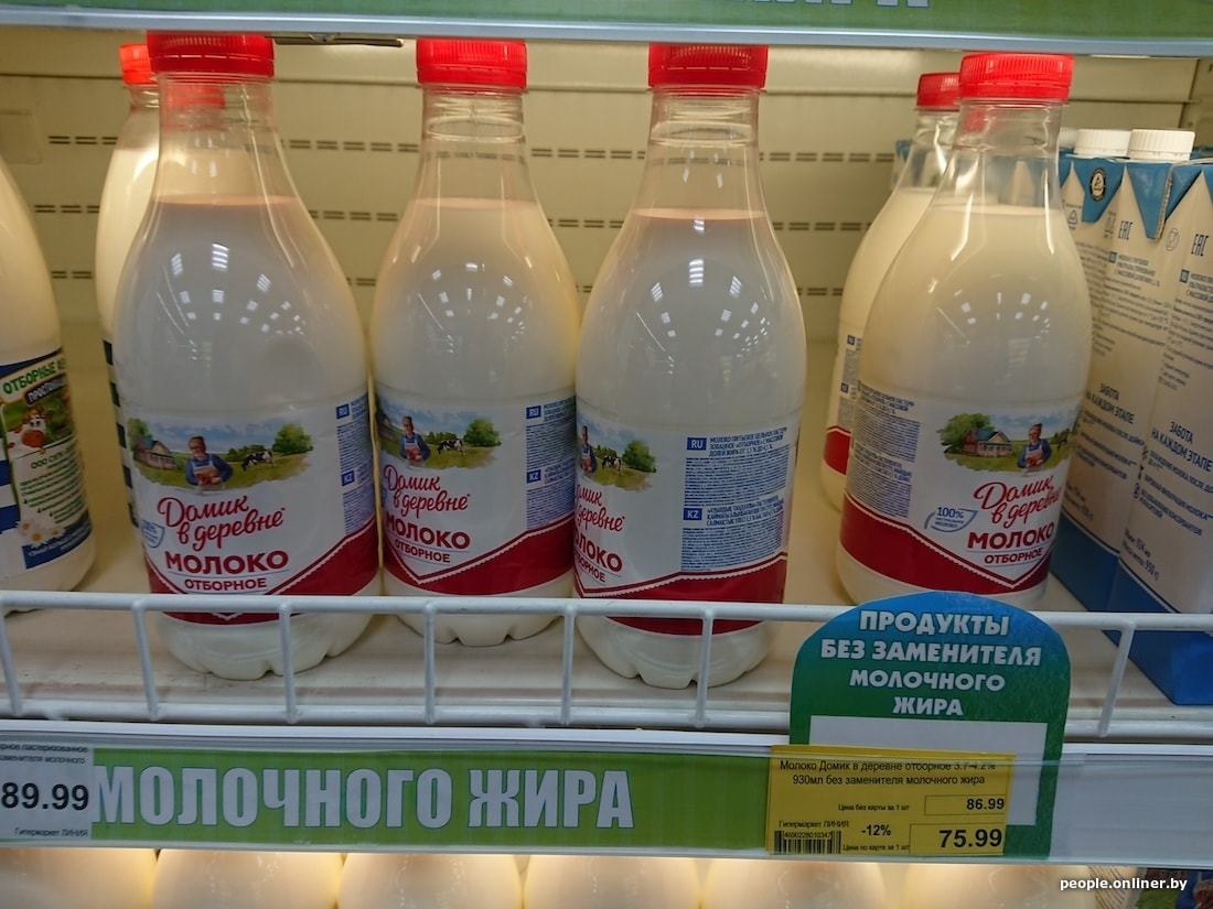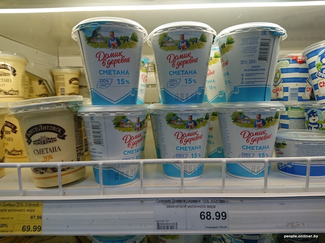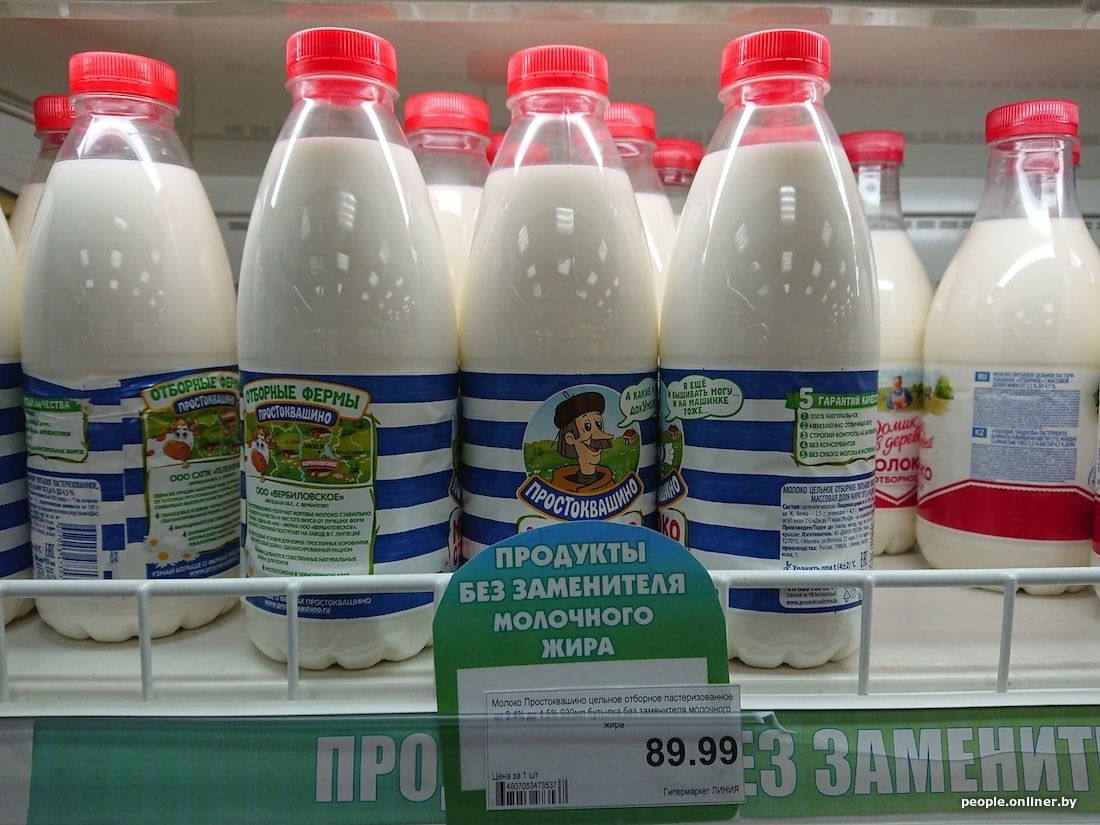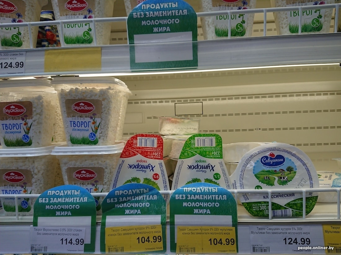 Белорусская бутылка молока с 3,2%-ной жирностью дешевле российской на 40 копеек, кефир 2,5% вообще отличается на 1,5 рубля. Сыр в Смоленске тоже сильно дороже: 200-граммовый брусок «Голландского» в российском гипермаркете стоит 5,54 белорусского рубля, в нашем — 3,15. Сливочный сыр марки «Брест-Литовск» тоже заметно отличается по цене — почти вдвое: у нас брусок стоит 3,59 рубля, в Смоленске — 6,01.