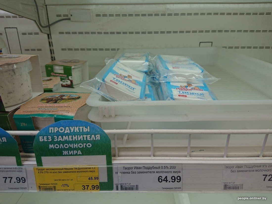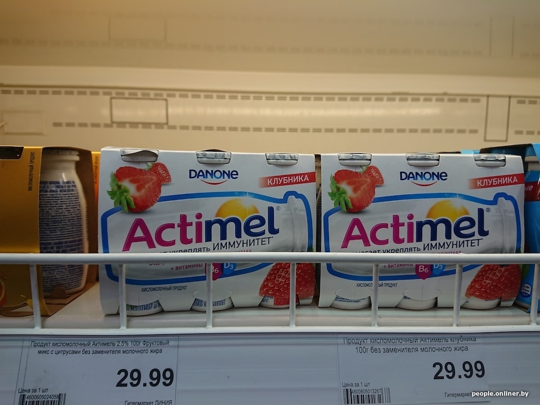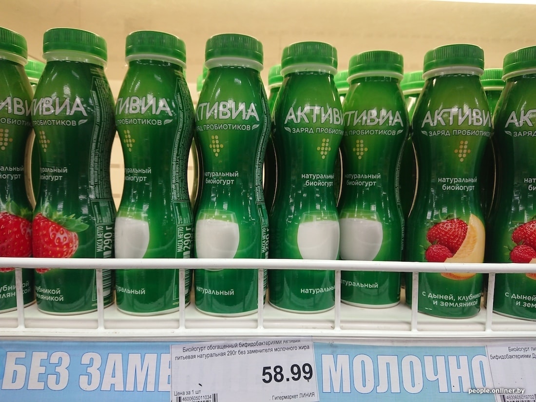 Питьевой йогурт без добавок от «Данон» у нас оценивают в 1,65 рубля, в России — в 1,87. За 300-граммовую упаковку 5%-ного творога от «Савушкина» белорусы отдают 2,15 рубля, россияне за такой же продукт — без четырех копеек 4. Стандартная пачка низкожирного творога у нас и вовсе в два раза дешевле.