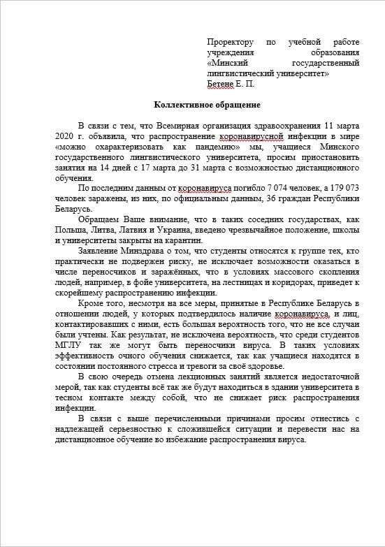 «Мы требуем усилить меры по профилактике распространения коронавируса среди людей, посещающих учреждения образования, которые являются местами массового скопления людей», — обращаются авторы петиции.