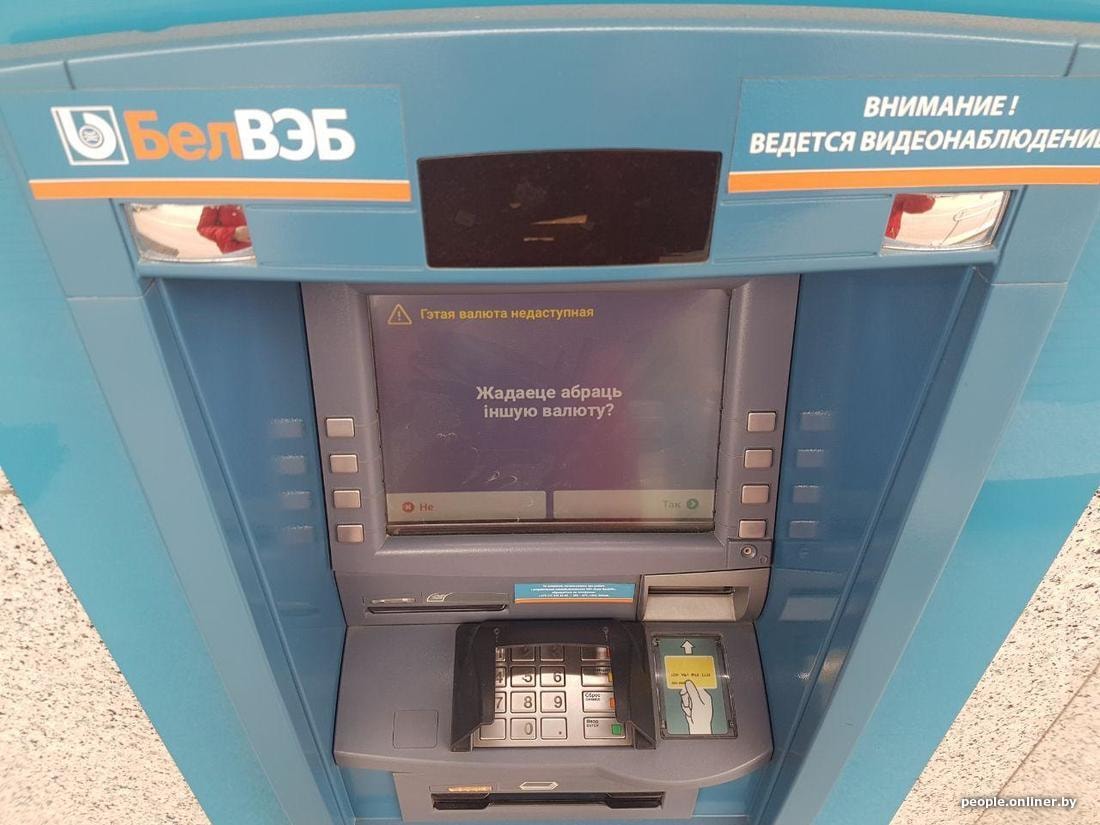 В «БелВЭБ» на Мясникова грустно мигает банкомат. Валюты нет. Даже по 2,65.