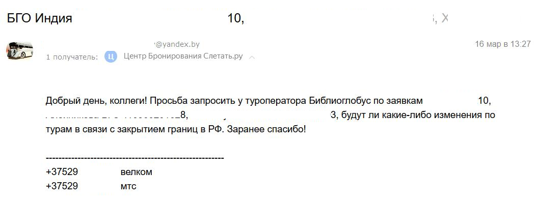 В редакцию пришло сообщение, что 36 граждан Беларуси сняли с рейса Гоа — Внуково, аннулировали билеты. Люди застряли в аэропорту в чужой стране. «Туроператор „Библио-Глобус“ никак не реагирует, белорусов просто привезли в аэропорт и оставили. Даже тех, у кого были билеты транзитом, не пустили на рейс. Все в полной неопределенности», — пишут читатели. Один из турагентов подтвердил эту информацию.