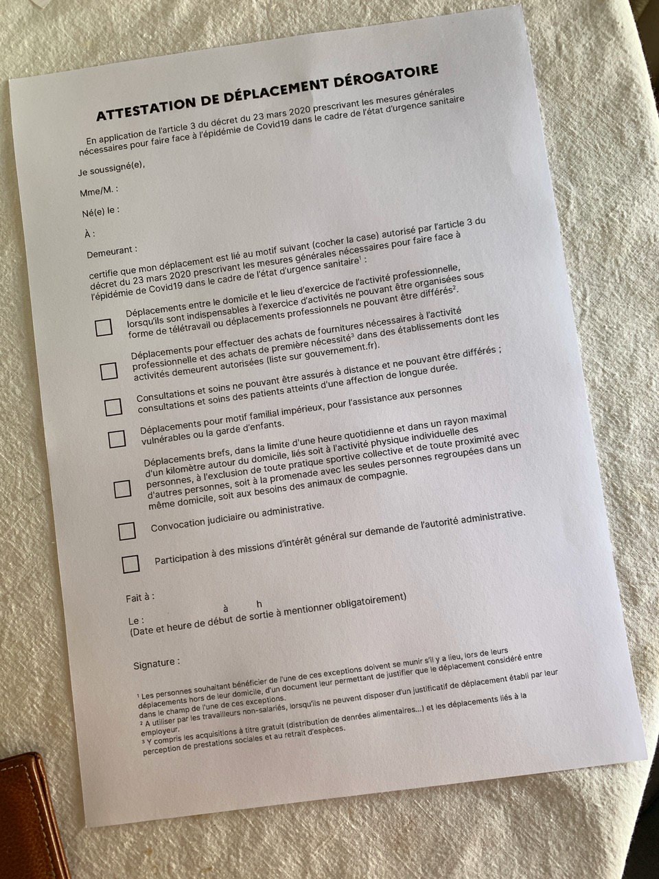 С того момента во Франции были объявлены новые меры: закрывалось буквально все, и второй этап выборов 22 марта все-таки перенесли. Выходить на улицу людям можно только с разрешения: распечатываешь или пишешь от руки имя и фамилию, по какой причине и куда выходишь, во сколько выходишь и где живешь.