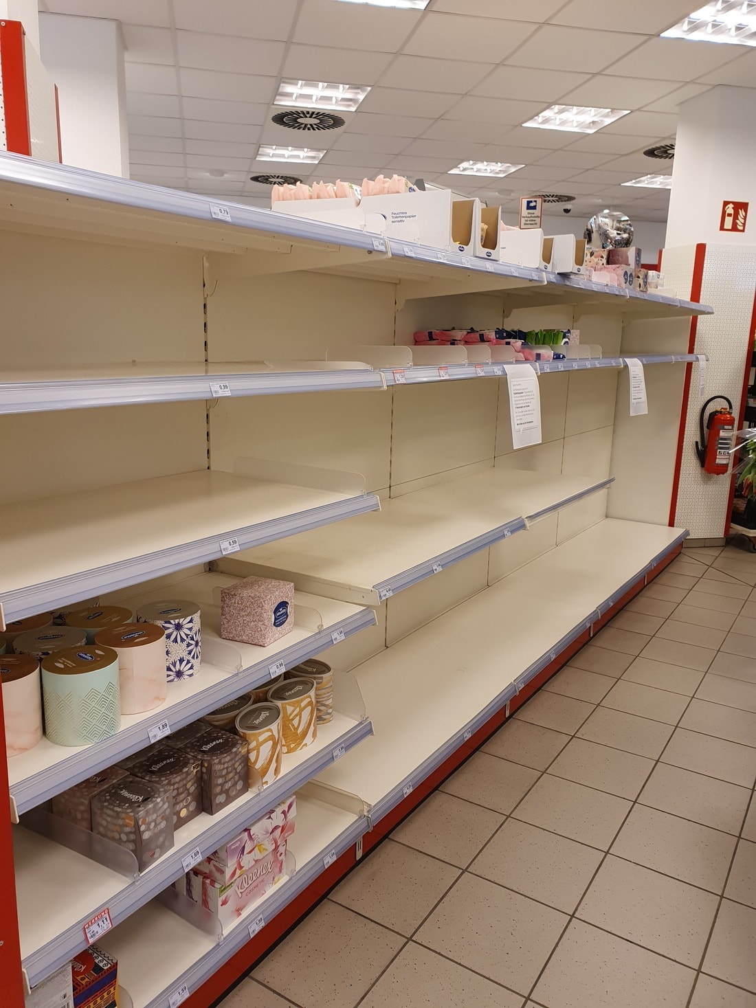 По словам Анастасии, в первые дни карантина люди сметали макароны, муку, соль и сахар, а также консервы. И, конечно же, туалетную бумагу. Но в магазины два раза в неделю приходят большие партии продуктов. Гипермаркеты даже выставили около входов огромные стеллажи с туалетной бумагой, консервами и другими ажиотажными продуктами — показать, что всего хватает.