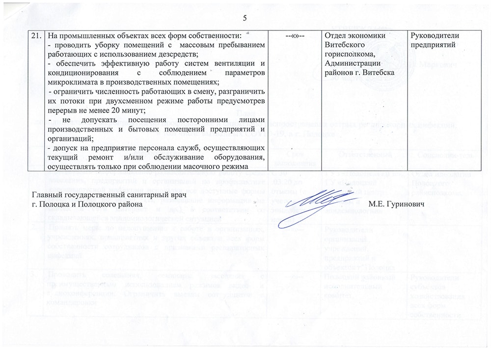 Еще один план дополнительных мероприятий по профилактике и снижению распространения острых респираторных инфекций, в том числе вызванных COVID-19. В этом раз из Полоцка.