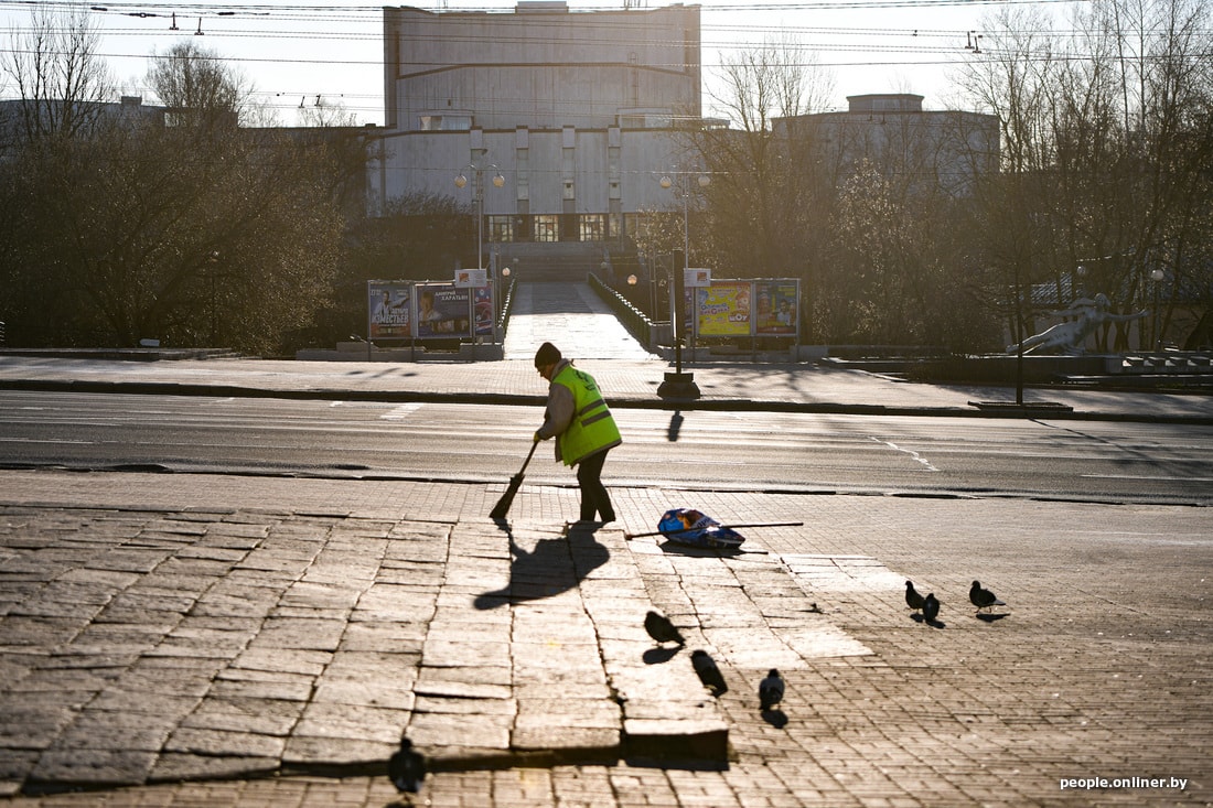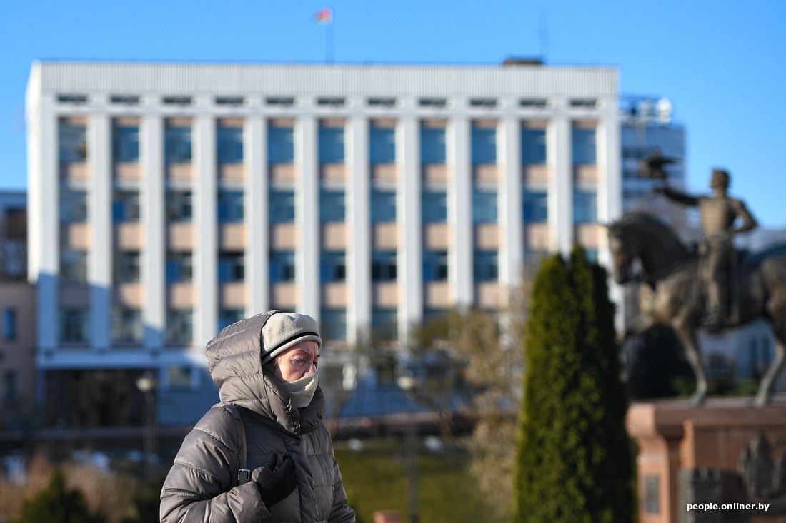 Первое место, куда мы отправились, — это Витебский областной клинический специализированный центр, что по улице Некрасова, 10. Сейчас проход на территорию центра закрыт. Нас встречает охранник в маске-респираторе.