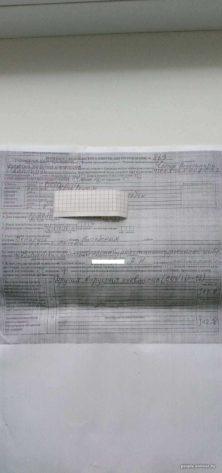Позавчера в Витебске в железнодорожной больнице умерла 73-летняя женщина. Ее дочь Наталья утверждает, что шесть дней назад у матери обнаружили коронавирус, и прислала нам подтверждающие это документы. В заключении о смерти также прописан COVID-19. Напомним, в тот же день в областном центре скончался заслуженный артист Беларуси и актер Витебского драмтеатра Виктор Дашкевич. Ранее анализ на РНК коронавируса у мужчины дал положительный результат. Об этом Onliner рассказала супруга умершего.
