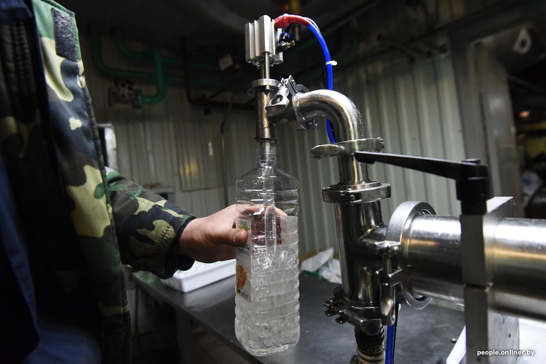 У завода имеется фирменный торговый павильон в городе. Заместитель директора Александр Казусенок говорит, что каждый день туда отвозят 1080 бутылок антисептика (два стандартных поддона). В розницу литровая бутылка (850 граммов) стоит 8,64 рубля, по безналу для организаций — рубля на полтора дешевле.