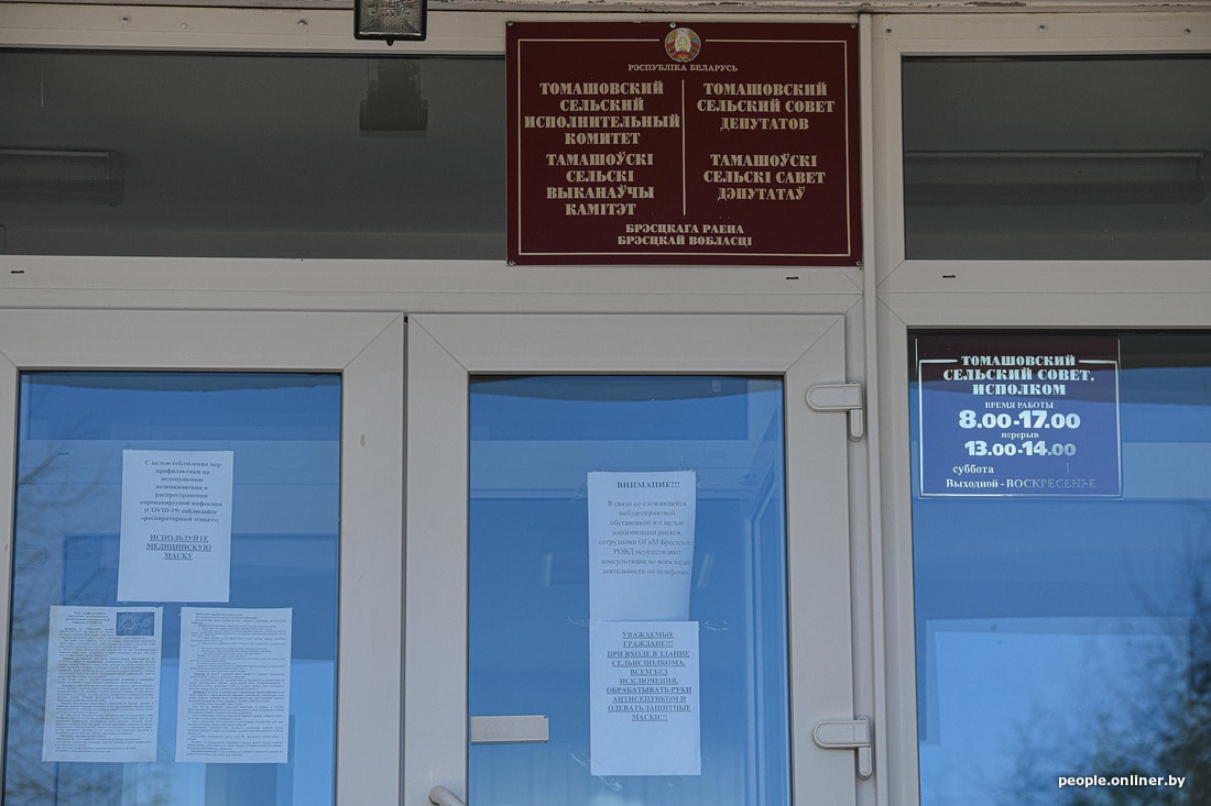 Без маски не зайдешь теперь и в Томашовский сельисполком, также на входе обязательно нужно обработать руки антисептиком. Глава сельисполкома Елена Бурак одной из первых в деревне стала носить маску и пользоваться антисептиком. Говорит, хочет показать местным жителям пример, но вздыхает, что пока этому примеру последовали единицы.