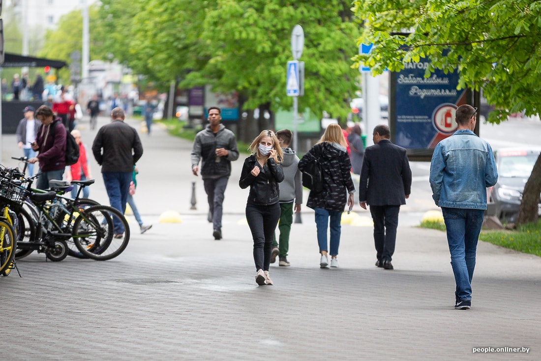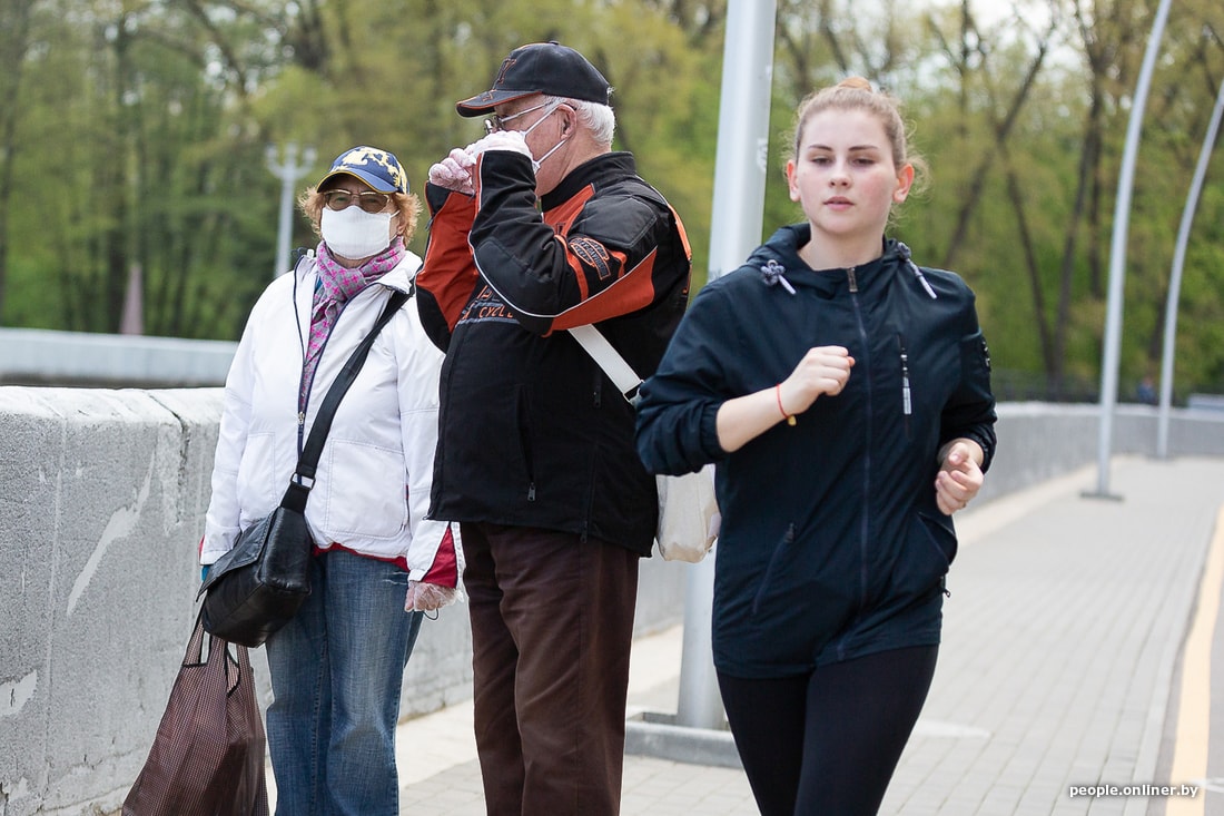 Люди вокруг говорят, что заразиться не боятся. «А что, на работу можно, а в парк нельзя?» — резонно парируют прохожие. Тем не менее многие смотрели парад по телевизору — пойти на него не решились.