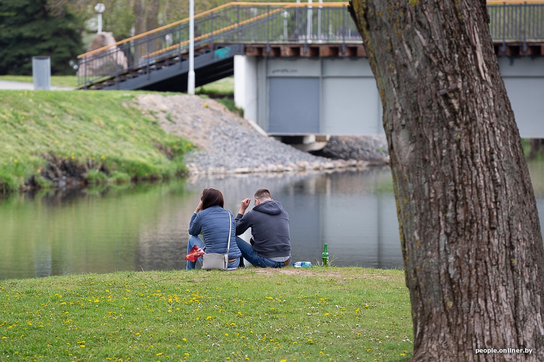 Обычно белорусы рассыпаются по парку Победы, где их ждут музыка, закуски и что-нибудь покрепче. Сегодня что-то пошло не так: в парке гуляет меньше людей, чем в обычный выходной. Субъективно, в прошлое воскресенье посетителей там было больше раз в пять.