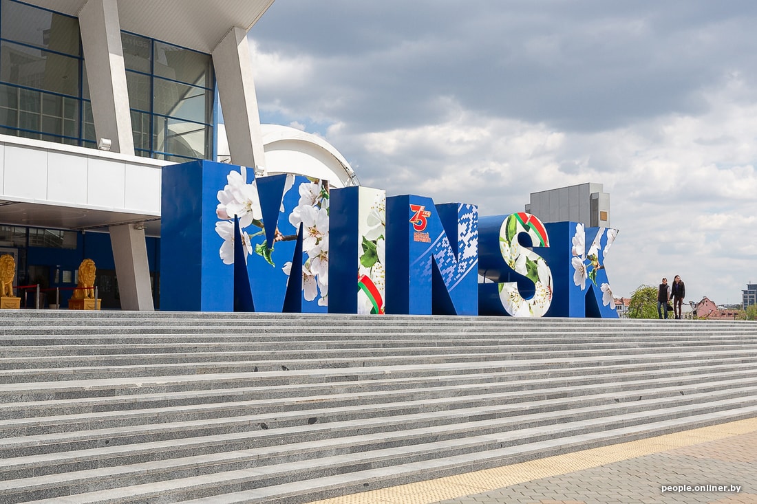 На площадке у Дворца спорта будто прошло цунами — лишь растяжка с поздравлениями на полздания. Начинаешь забывать, что каждые выходные и праздники территория забита экспозицией с гордостью белорусского лег- и пищепрома. Ни пивных заседаний, ни грохочущей музыки, ни запаха шашлыка. Раньше ведь там кирпичик за кирпичиком формировалась белорусская национальная идея — через песни Анжелики Агурбаш и Алексея Жигалковича (та, где поется про бульбу суперкласс). А что, если все это все было сном?