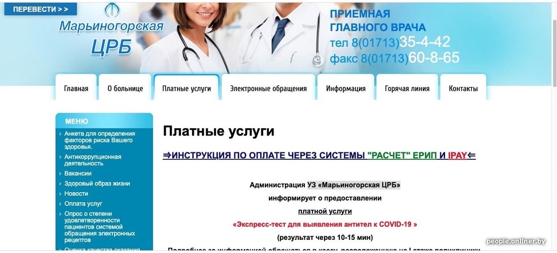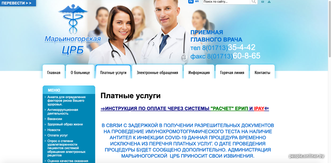 10 мая для сайта Марьиногорской больницы стало прорывным: по нашим сведениям, тогда его посетили аж 74 тыс. раз. В самом городе живет почти в четыре раза меньше, но интересовались далеко не местные. Упустив извинения администрации и сообщение, что документы еще не готовы, в ЦРБ начали съезжаться люди из Червеня и Минска: всем чесалось узнать, переболели или еще нет. Рано приехали: больница еще не оформила все документы, но тесты скоро действительно будут. Цена на один тест была обозначена в 40 рублей (для медработников — 36). Условие — лишь деньги. Все, что подтвердили нам в самой ЦРБ, — то, что тесты закуплены исключительно за внебюджетные средства.