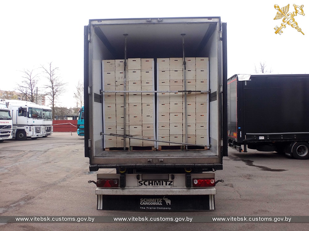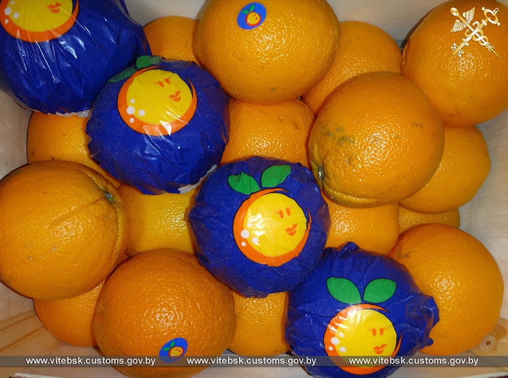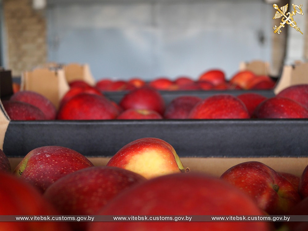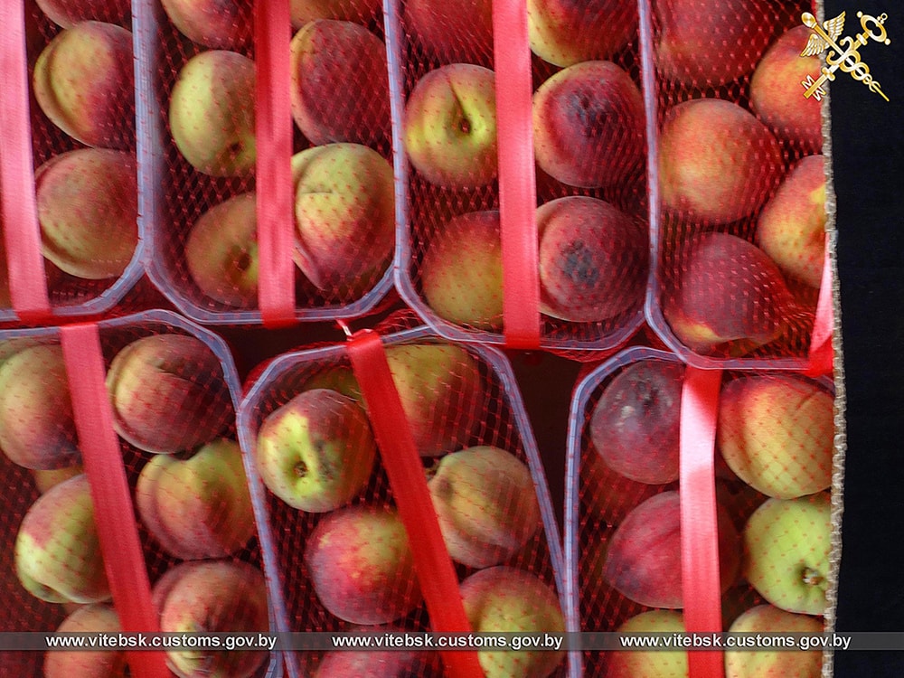 Витебская таможня сообщает, что груз намеревались переместить в Россию без документов. Таможенники совместно с милицией «приостановили» два грузовика, которые двигались в сторону России через Дубровенский район. В одном автопоезде находилось более 20 тонн свежих апельсинов, персиков, нектаринов и мушмулы, а во втором — более 20 тонн яблок. Сообщается, что представители российских перевозчиков не смогли представить необходимые сопроводительные документы, в том числе фитосанитарные сертификаты.