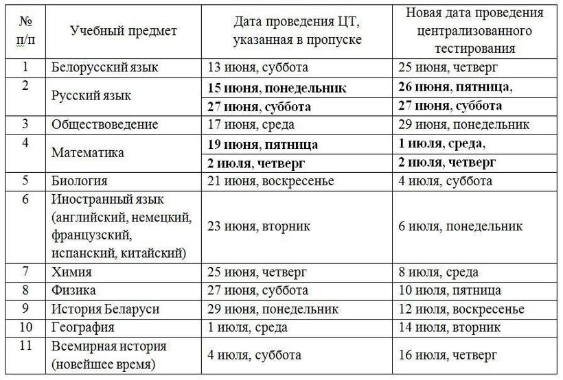 Министерство образования уже сообщало, что сроки централизованного тестирования будут сдвинуты из-за эпидемии. Было лишь известно, что начнется эта кампания 25 июня (прежний срок — с 13 июня). Сегодня опубликованы конкретные даты с разбивкой по предметам. И инструкция для участников (регистрация которых заканчивается 1 июня).