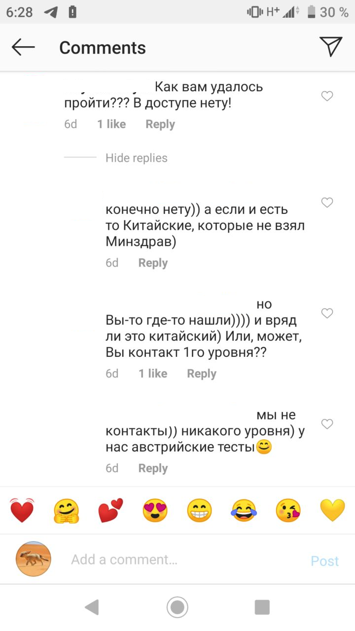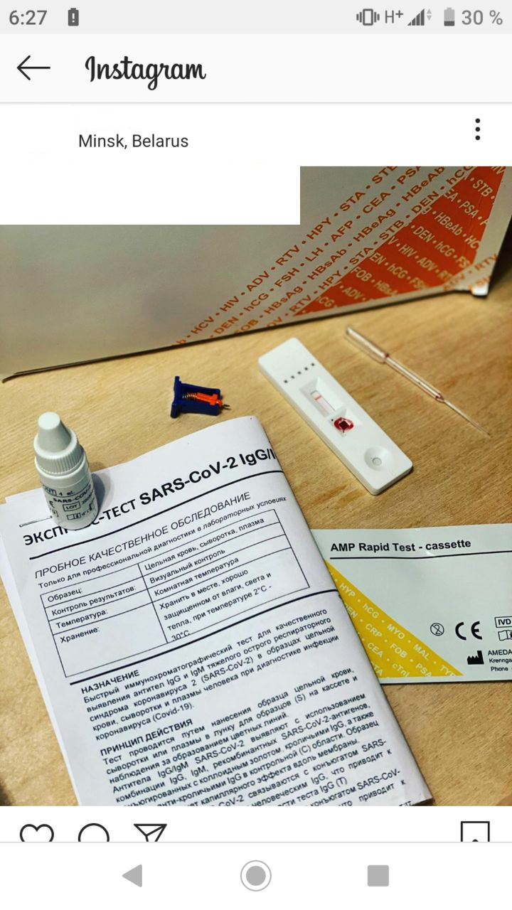 Тем не менее еще в начале мая особая прослойка белорусов получила свои тесты и хвасталась этим в Instagram. Кулуарно рассуждали о выносе целых коробок от знакомых из сферы. Тесты, кстати, австрийские.