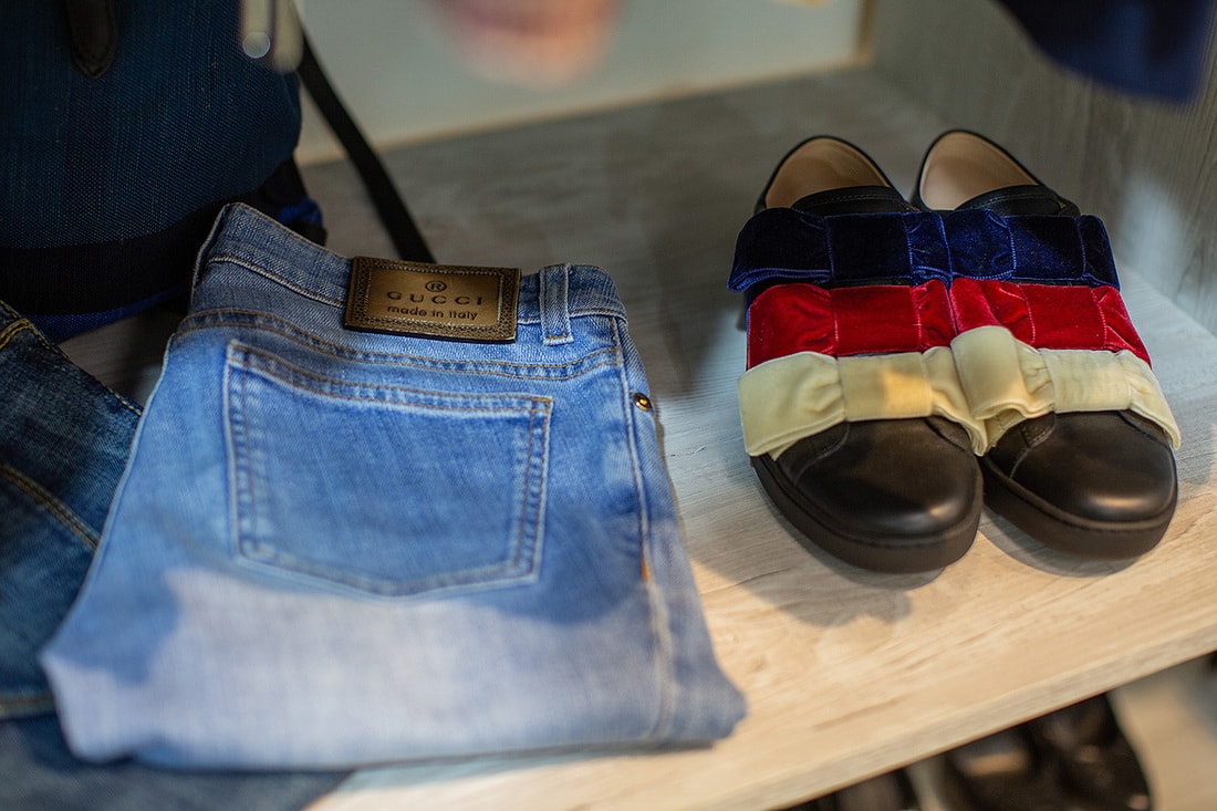Упор здесь — на бренды с громкими именами: Burberry, Gucci, Chanel. Понятно, почему ценители брендов заглядывают сюда часто: среди выставленных экземпляров встречаются выпущенные буквально в прошлом или позапрошлом году и надетые пару раз. Есть и почти раритетные модели: например, сумка Louis Vuitton, которой уже не меньше пяти лет, о чем свидетельствует характерный «загар» на светлой ручке.