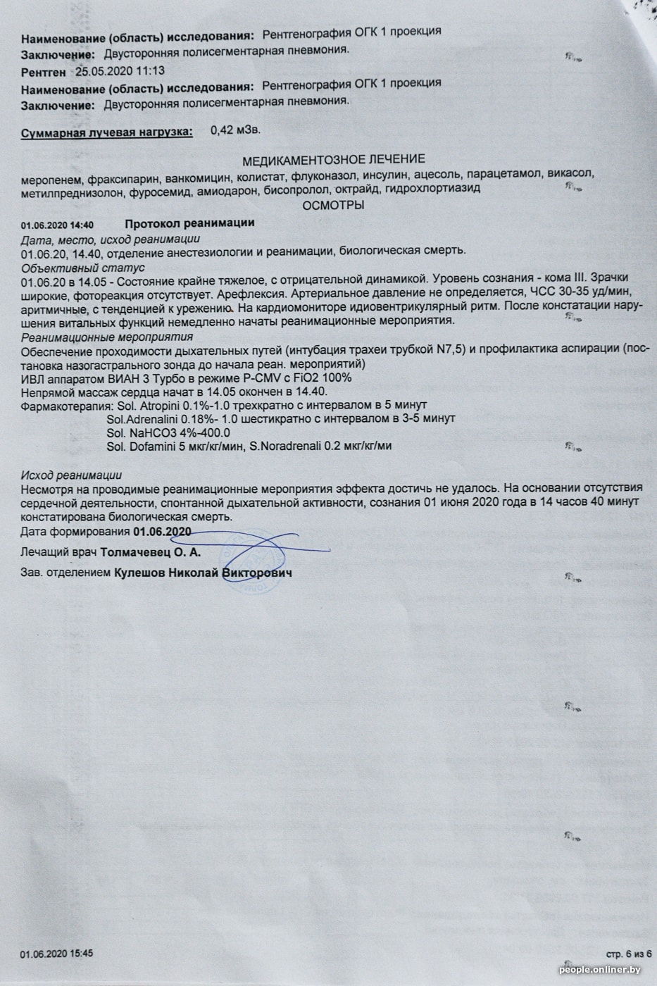 — В понедельник я дозвонилась в отделение. Муж лежал и уже плохо соображал. Днем его подняли в реанимацию, где он провел на кислороде следующие 18 дней.
