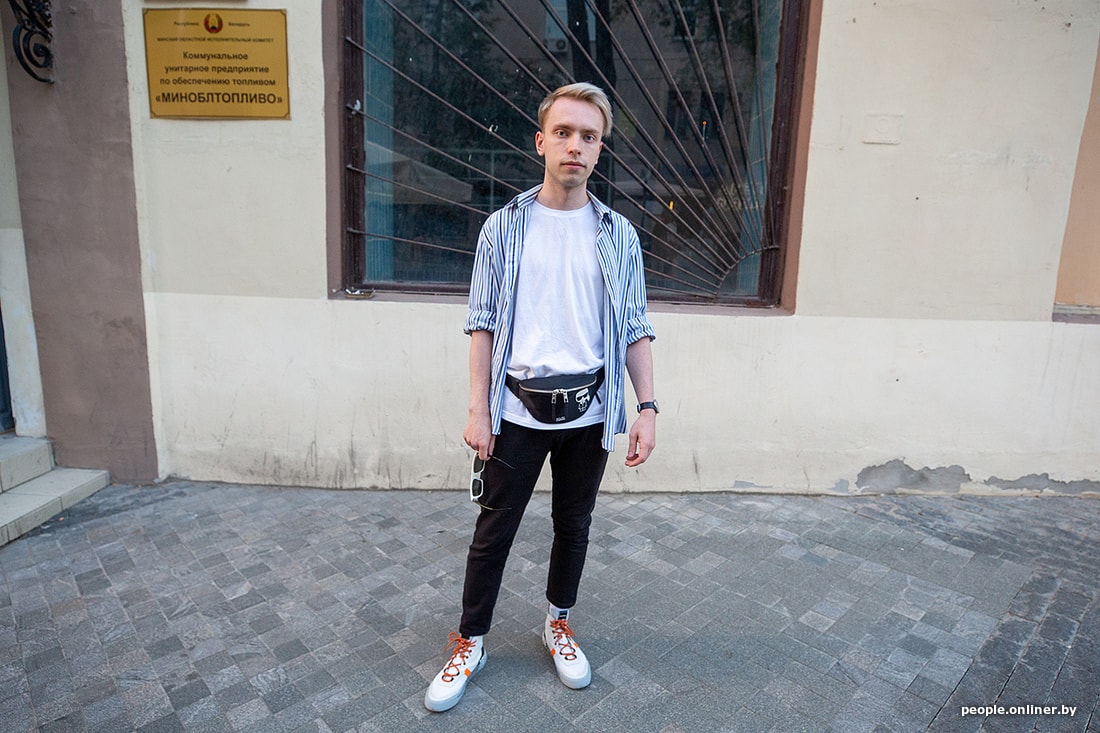 — На самом деле, я шмоточник. Это началось лет в 16: я ходил по магазинам, составлял образы. Это интересно: сегодня — оверсайз, завтра — классика. Каждый день можно одеваться по-разному в зависимости от настроения, и люди тогда тоже будут воспринимать вас по-разному. На то, чтобы изучать моду на сайтах, жалко времени. Всегда стоит смотреть по сторонам, на прохожих. В Минске много красивых людей, особенно весной и летом.