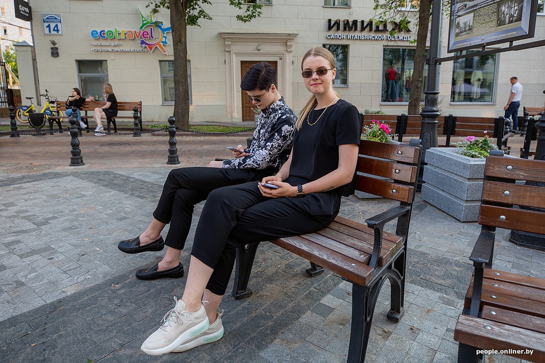 В эти выходные в тусовочном центре Минска было жарко и красиво: девочки на каблуках стучали по асфальту в сторону Bistro de Luxe, возле Tapas Bar образовалась курортная атмосфера с шезлонгами и сангрией, на Зыбицкой, как обычно, толпа прыгала под музыку уличных звезд. Минчане оголились, наконец достали из шкафов шмотки на выход и радуются жизни в общем потоке летнего бессознательного. Onliner словил самых модных: показываем, в чем гуляет молодой Минск и сколько тратит на своей внешний вид.