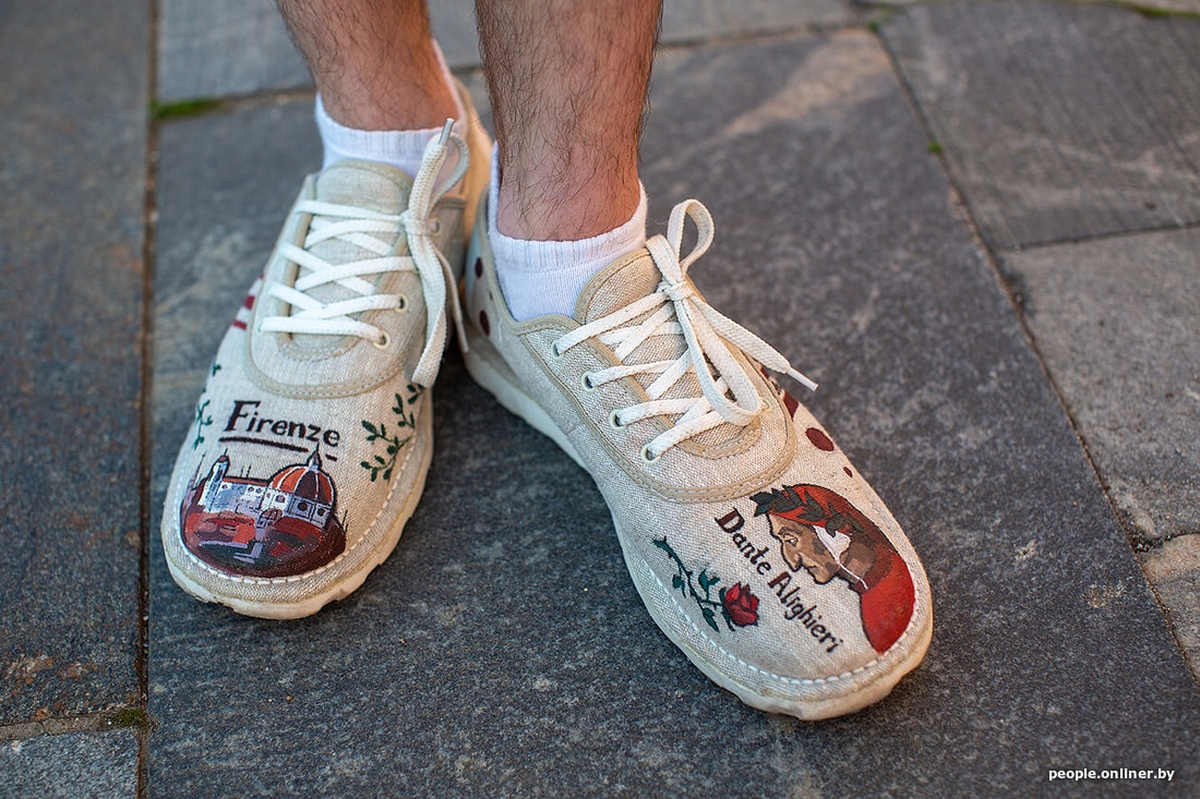 — Кроссовки решил расписать сам: это Данте Алигьери, это Флоренция, круги ада, а сзади написано «Божественная комедия». Мне кажется, это выглядит очень стильно. Портфель я нашел в гостинице. У меня там работает мать. Часто постояльцы забывают одежду в хорошем состоянии. В хорошей одежде чувствуешь себя приятнее, увереннее, легче жить. Цена не принципиальна — и в секонде можно купить. Если психану, могу и половину бюджета отдать на одежду. Зависит от настроения. Но вообще — трачу немного.